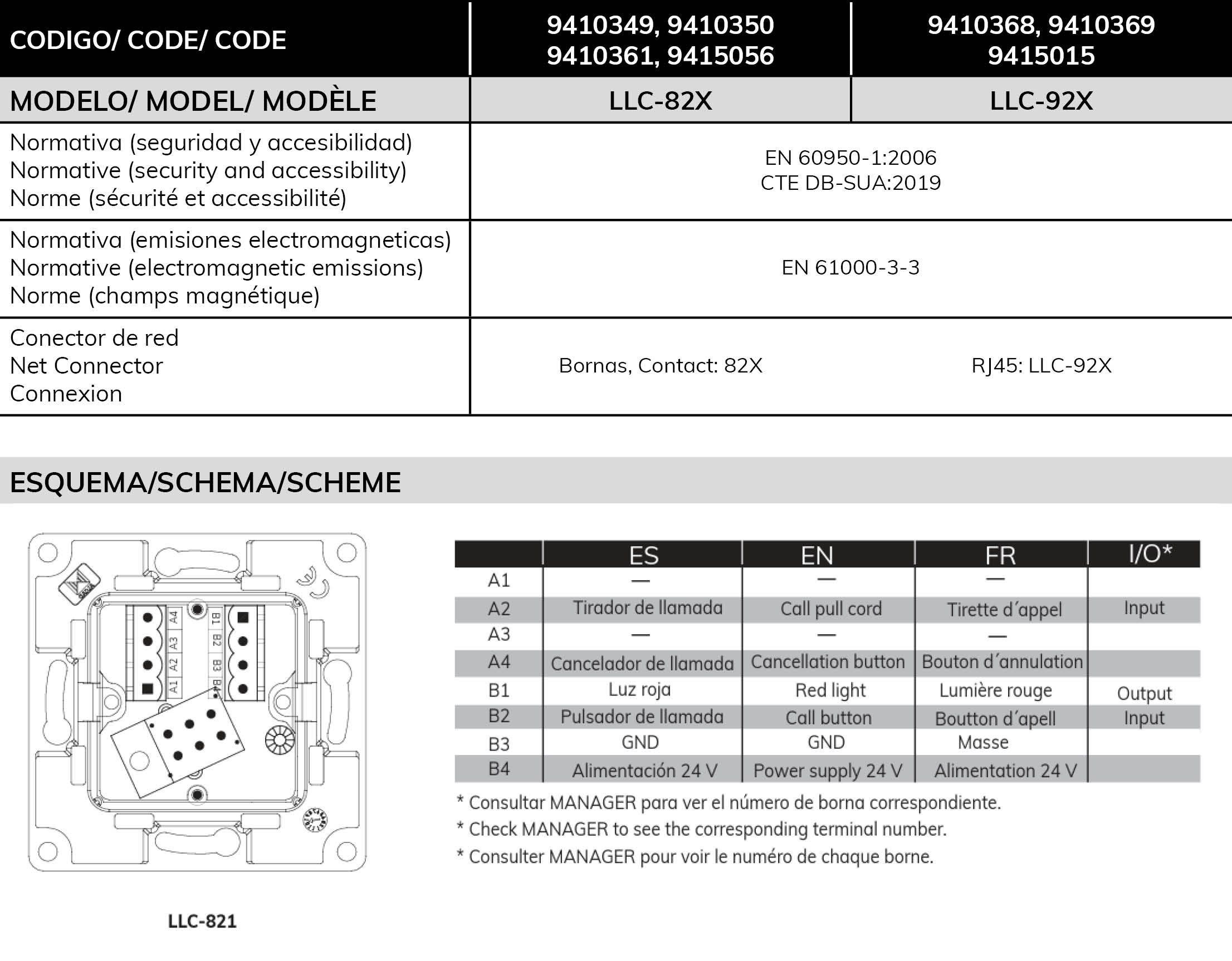Bathroom pull-cord touch version with an antibacterial coating. It is formed by a two meters cord, two push buttons and a red reassurance LED indicator. It allows to launch an emergency call by pulling the pull-cord or pressing the red call button. Once the call is initiated, the red LED indicator allows an easy identification of the call status. The call can be cancelled pressing the cancel button. The LLC-821 has an anti-strangle mechanism that allows the separation of the pull-cord into two parts to avoid accidents.