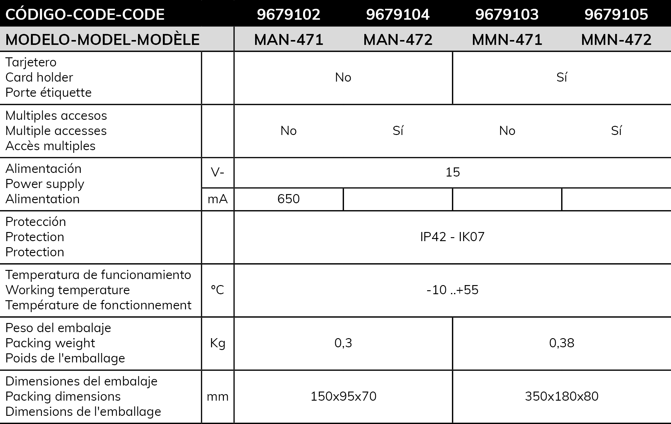 Available in modular format, with upper and lower modules. The upper module is simple. The lower module is available with simple or double push-buttons.