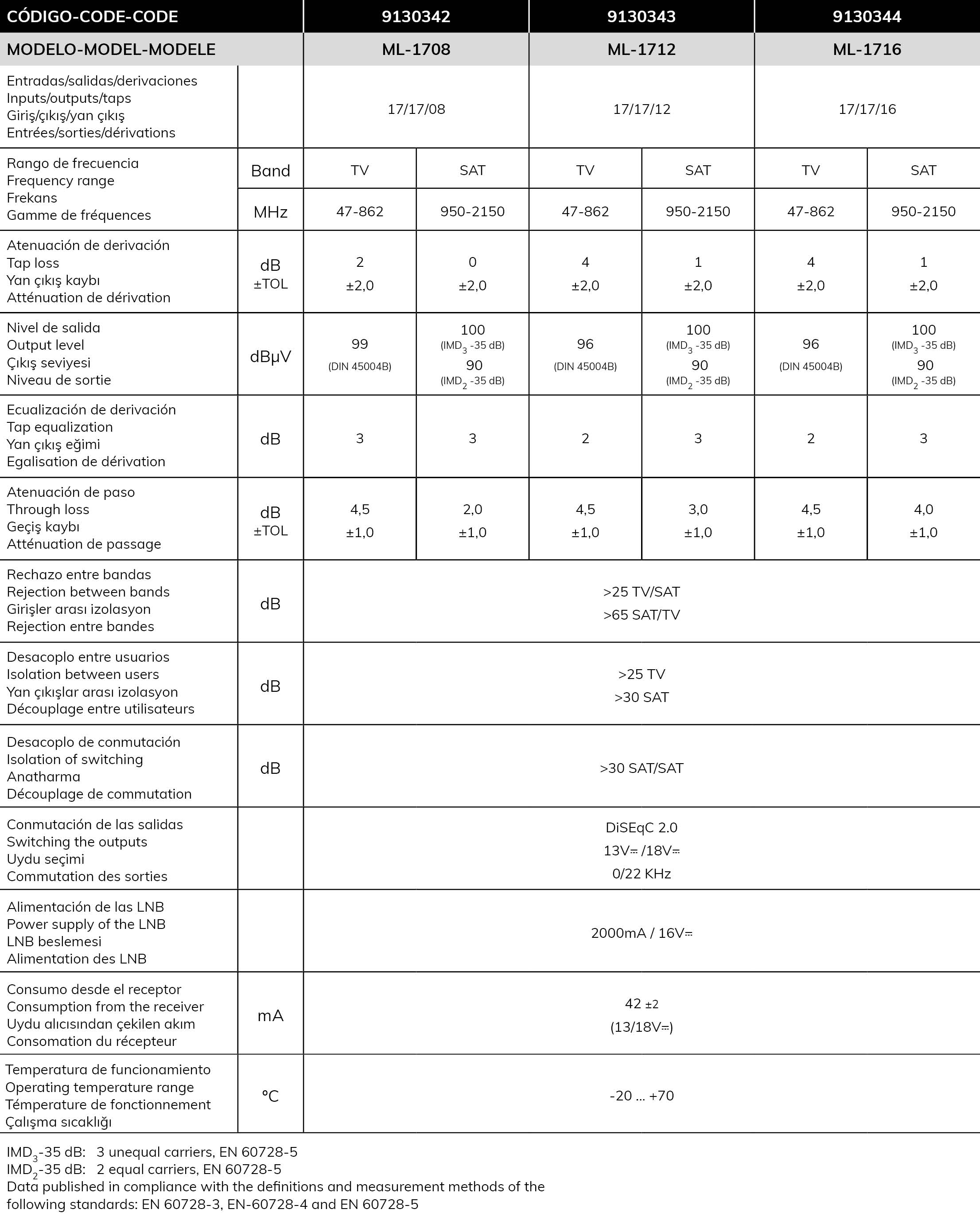 Medium-sized collective satellite and terrestrial TV installations. It is essential that they be mounted along with end multiswitches, so as to obtain distributions of up to 64 outlets on a single line if they are installed with intermediary amplifiers.