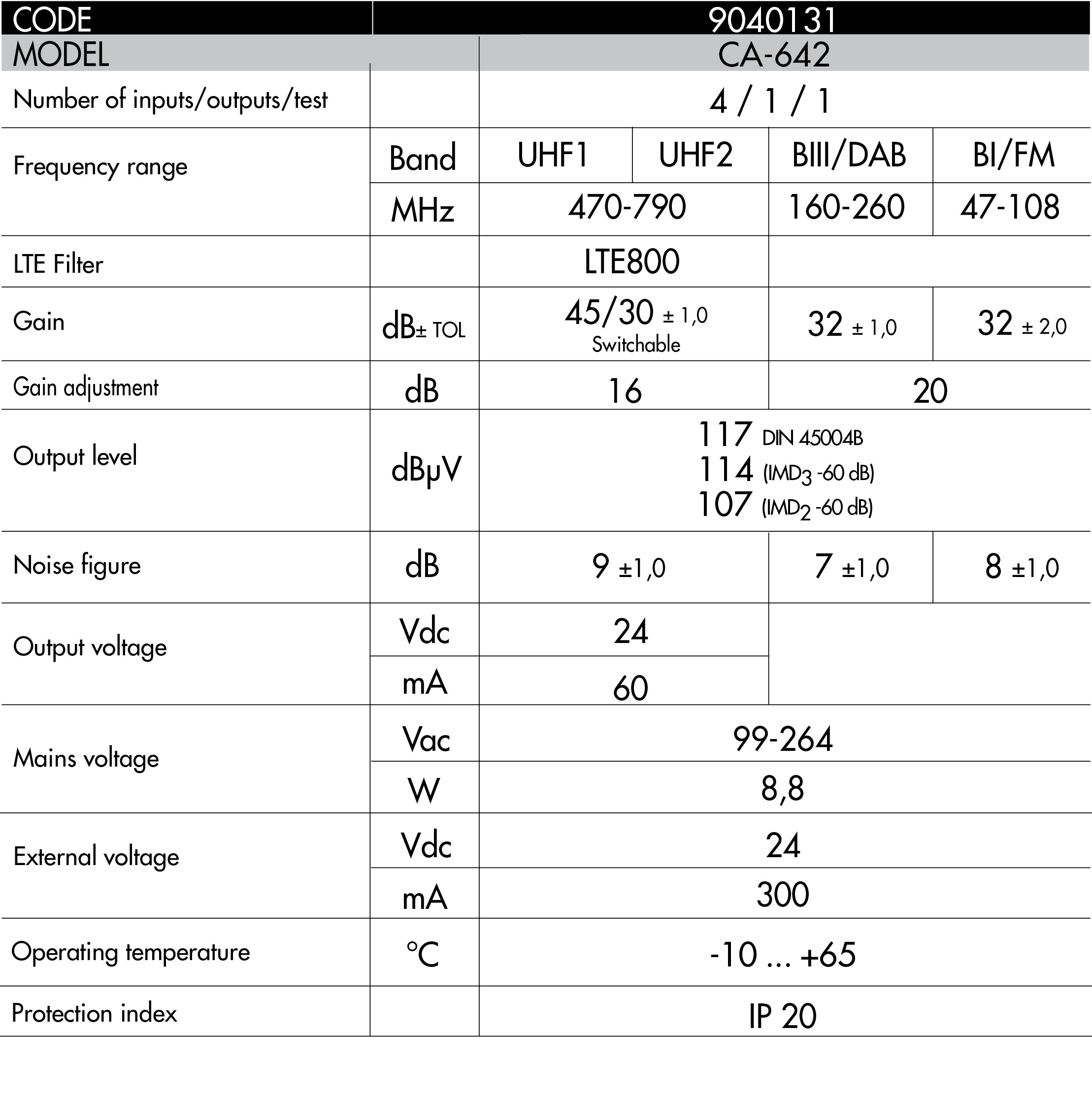 Large-scale digital and analogue MATV installations which are affected by the transmission of LTE800 mobile telephone signals. Suitable for installations where the channels of each band are received at similar levels. Adjustment by means of switches and regulators which control the gain at each input.