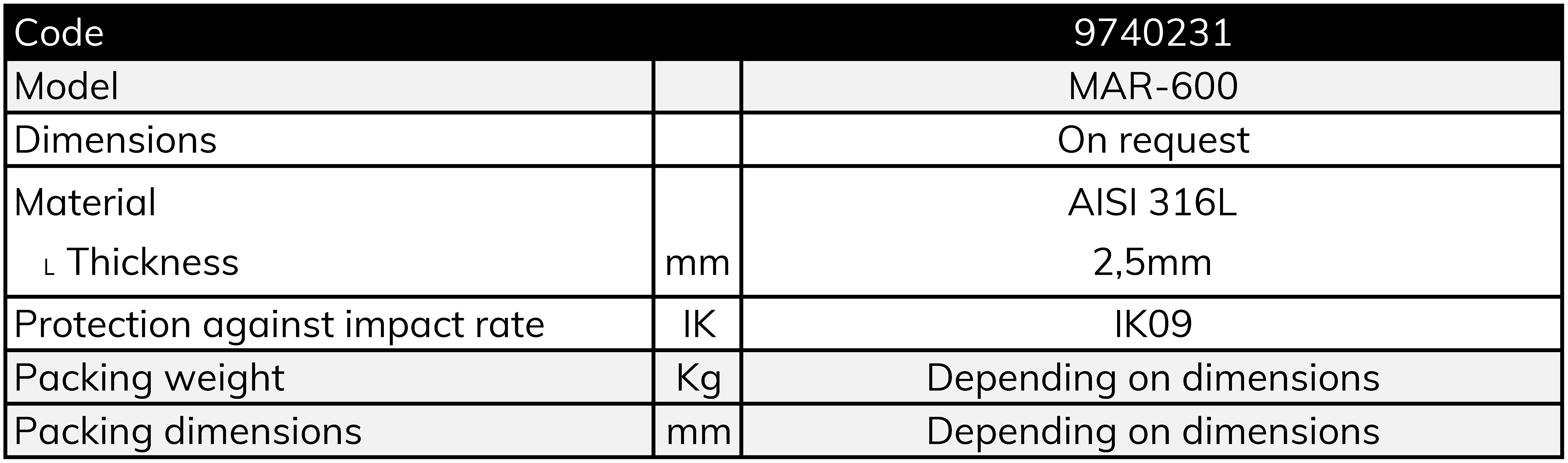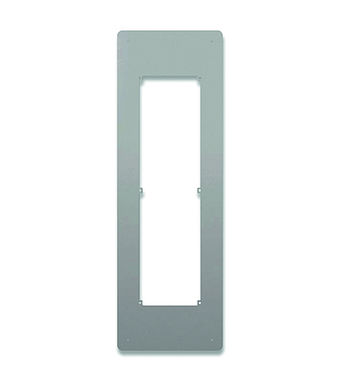 Useful for replacements when the entrance panel that is being replaced is of larger dimensions than the new entrance panel or for installations where the surface of the wall is uneven. Construction in stainless steel AISI316L 2,5 mm thickness. Protection against impacts up to rate: IK09.