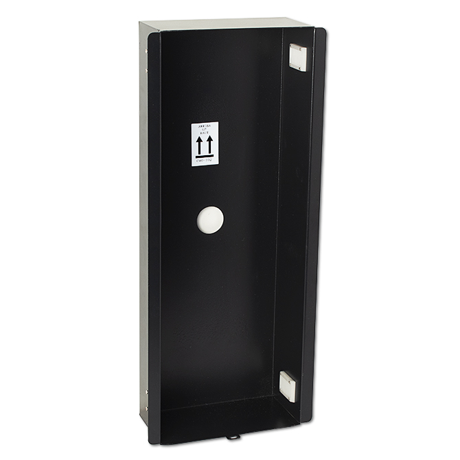To embed an entrance panel to the wall, it is necessary to previously place a flush-mount box where we will later fix the plate. This box is made of aluminum. It has some plates that allow to hold the entrance panel during installation, thus facilitating the work of connection and start-up of the different elements of the system.