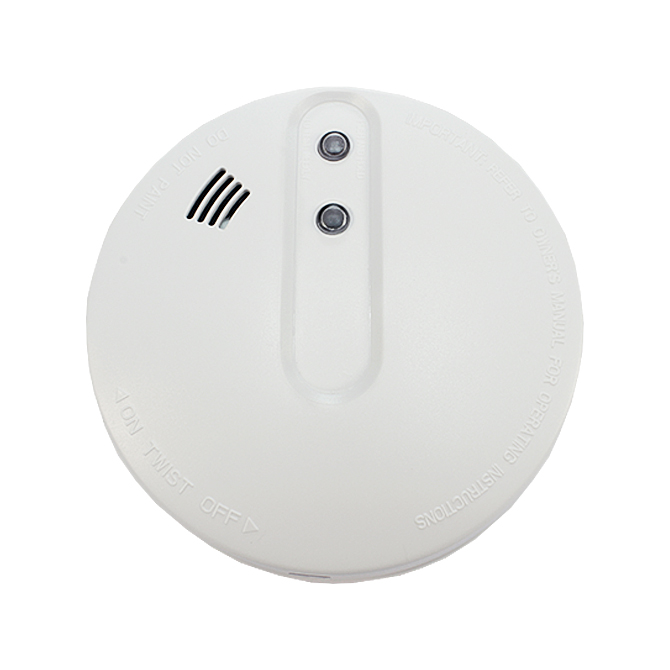 Wireless RF smoke sensor with a red led and warning buzzer.
