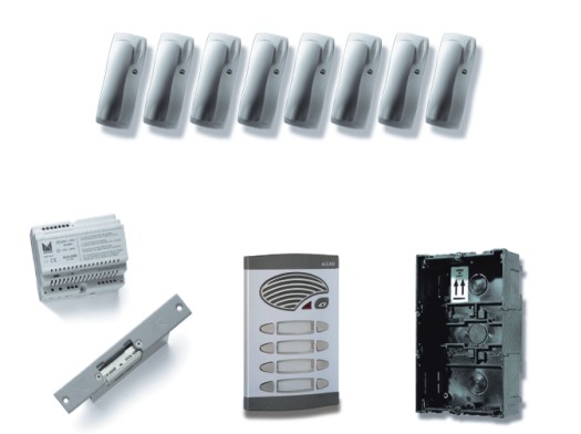 The ALCAD Door entry system kits Include all the necessary materials to carry out the installation, with the exception of the cable. Include entrance panel for the building, power supply and indoor telephone. The installation can be completed with accessories, such as rainshields or decorative frames.