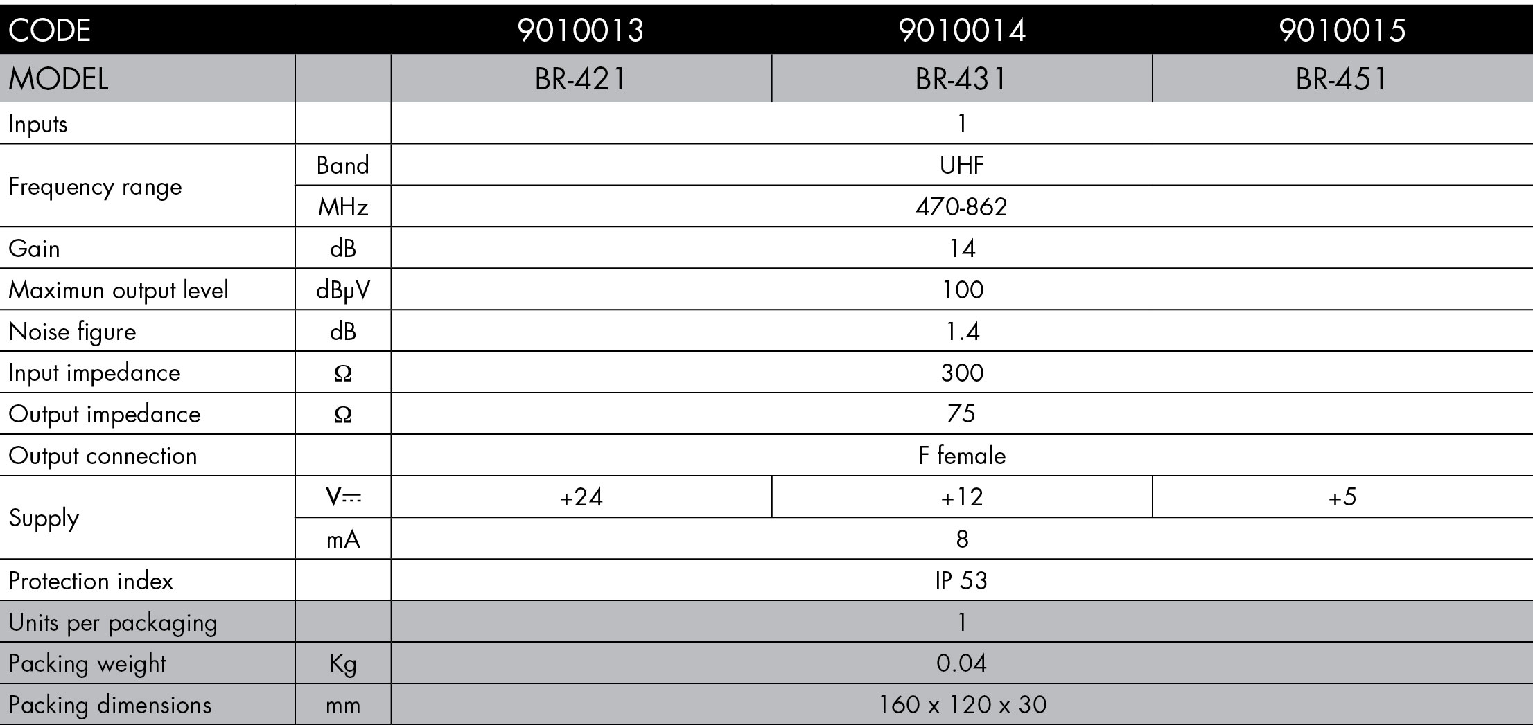 UHF preampli?er for the NEO antenna box, powered through the coaxial cable. As well as amplifying the signals it adapts the antenna impedance from 300? to 75?. The noise level is extremely low in order to amplify the signals without losing quality.