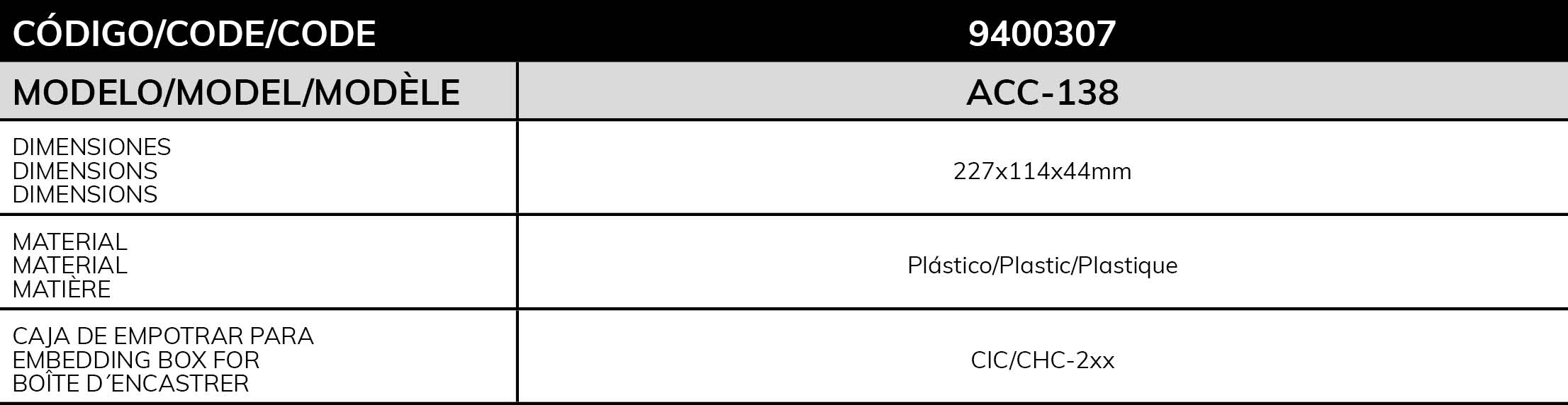 PLASTIC FLUSH-MOUNTED BOX FOR CHC-2XX