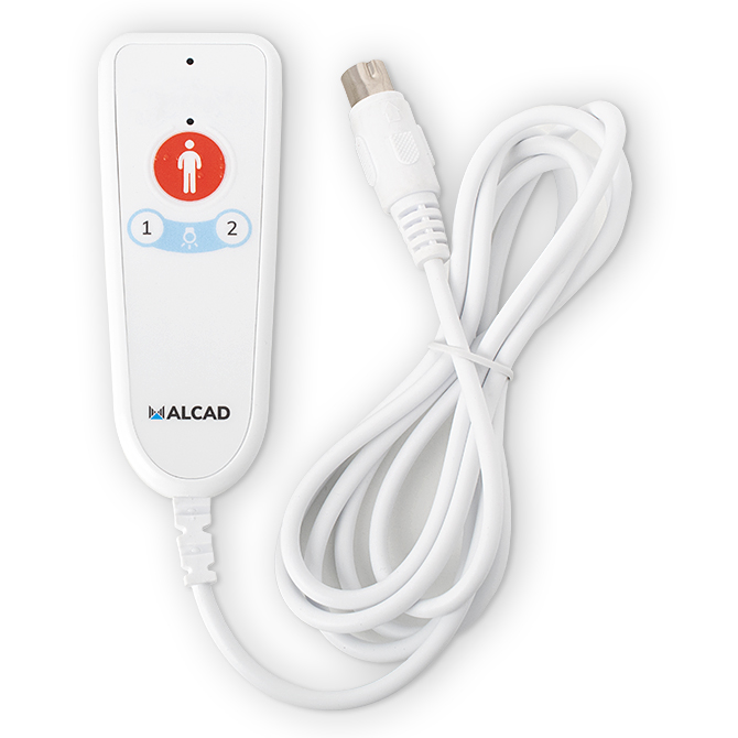 Push button base, touch version, with antibacterial coating, a present/away button and a green led. This button allows to indicate the start and/or end of the presence in the room by activating the present/away button, while the green led allows to identify the room.