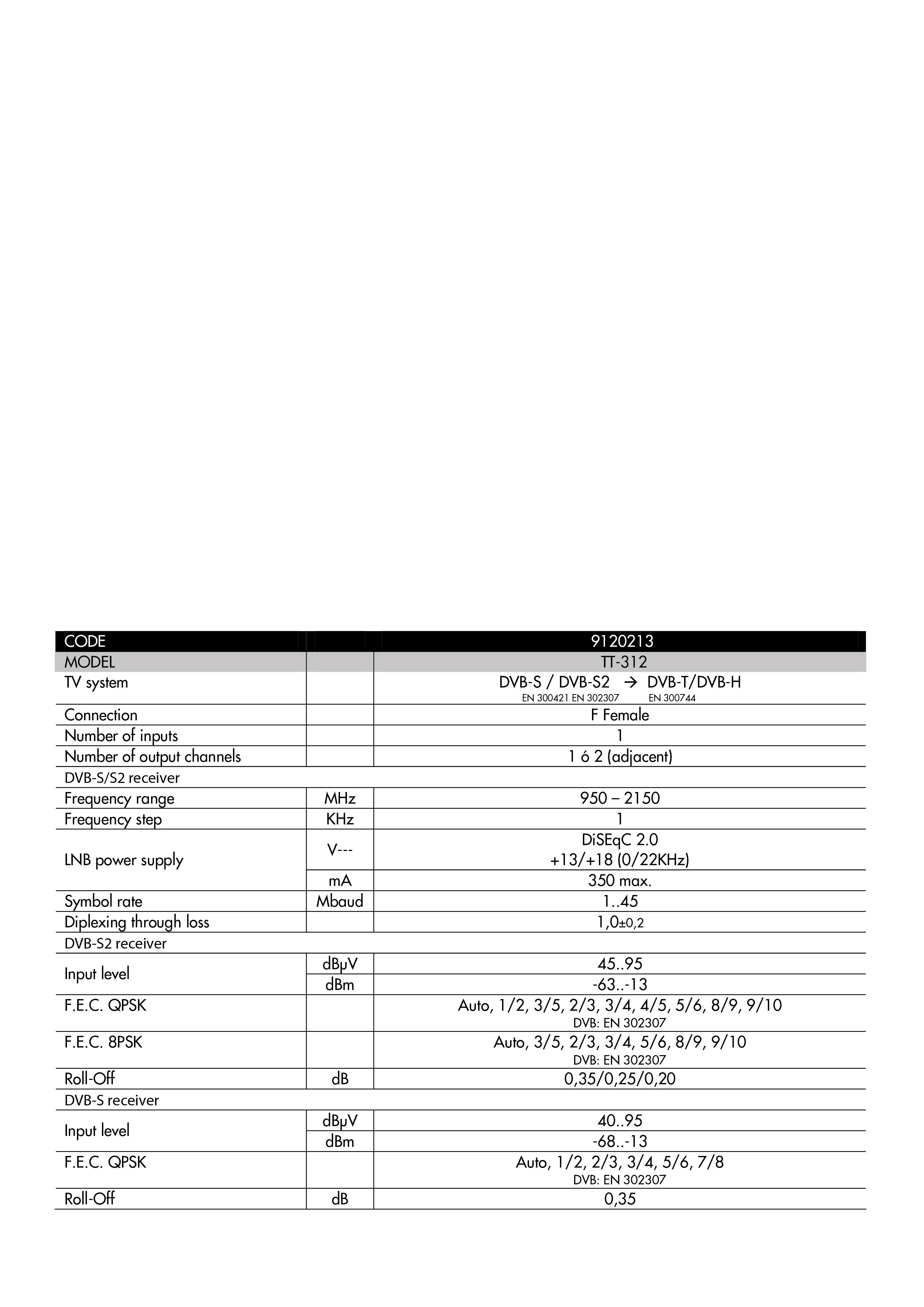 Automatic error-detection system which greatly reduces maintenance work on the installation. Generated output channels of oustanding quality. Zamak chassis with metal side panels. F-type connectors. The equipment can be assembled quickly and easily.
