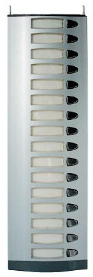 Módulo inferior de placa de calle L201 con pulsadores. Perfil de aluminio. Se utiliza en sistemas convencionales o digitales. Esta placa dispone de 16 pulsadores de llamada dispuestos en 1 columna