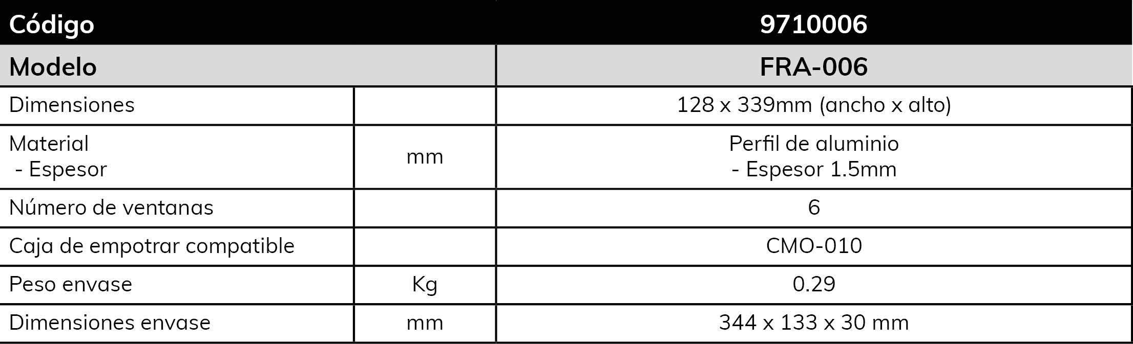 BASTIDOR 6 VENTANAS PARA PLACA USOA