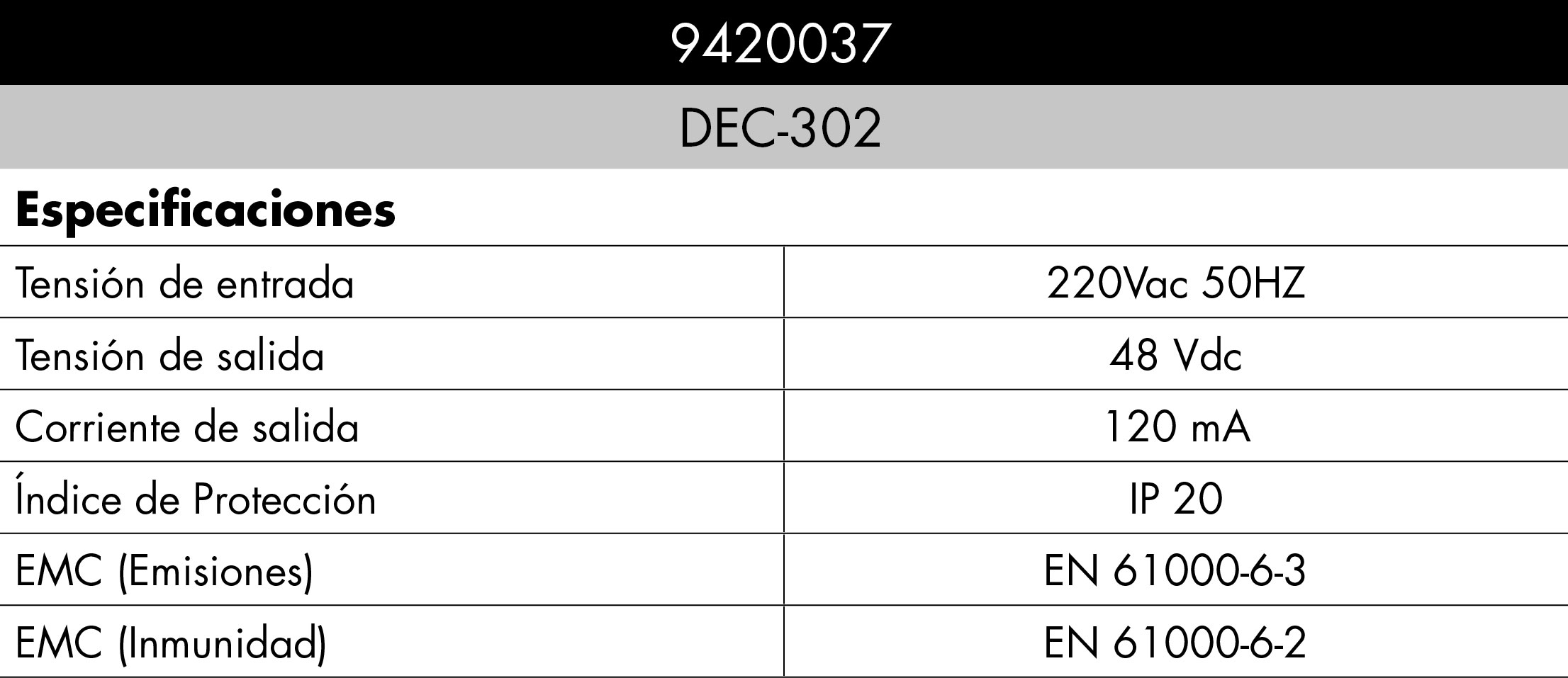 Fuente de alimentación para el DEC-305. Convierte la corriente alterna principal en 48V de corriente continua. Necesario si no se alimenta el DEC-305 por medio de PoE.