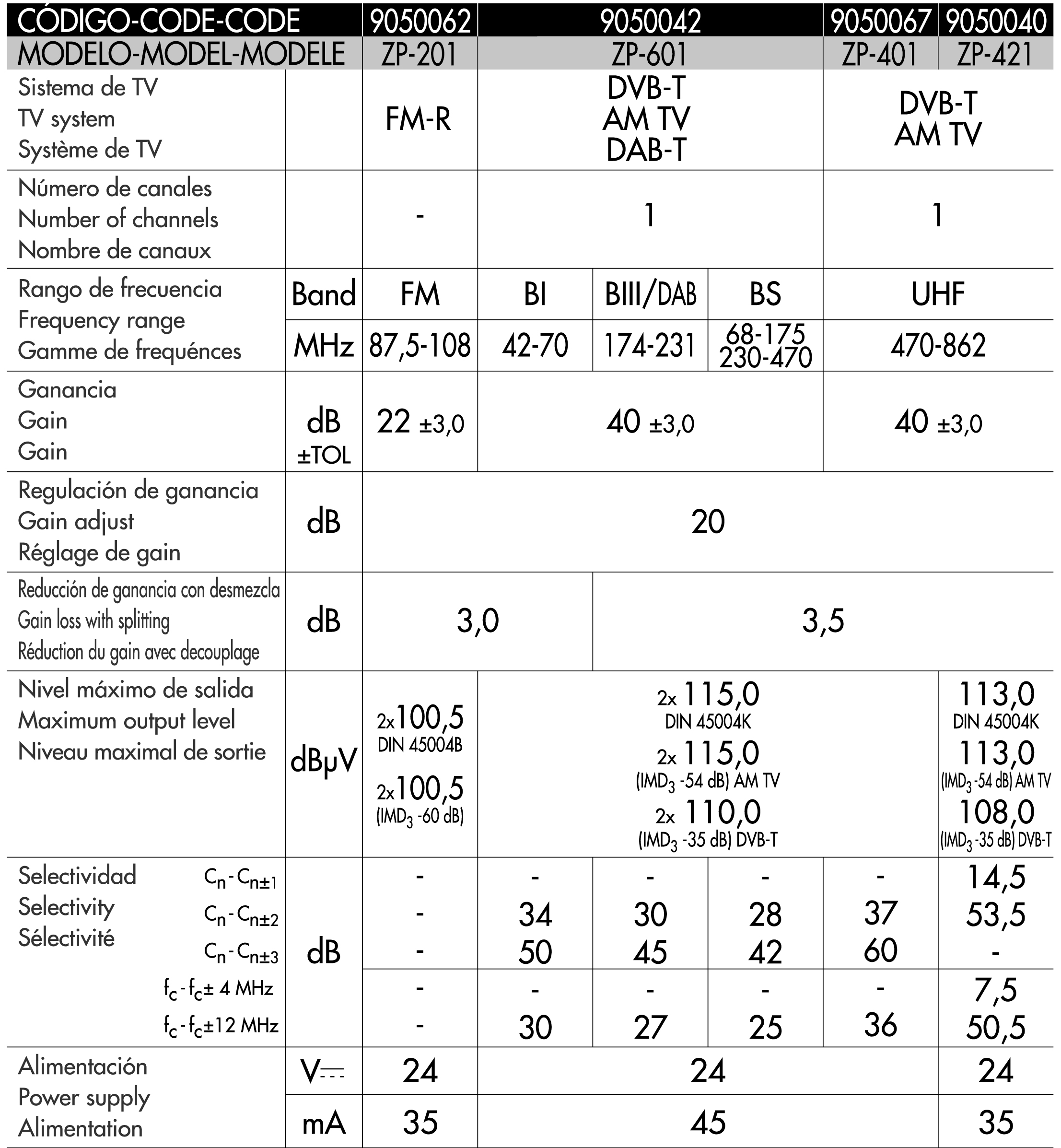 Amplificador monocanal para la banda UHF diseñado para trabajar con canales adyacentes. Tiene una alta selectividad que permite la ecualización independiente de cada canal adyacente. Alta ganancia y nivel de salida. El canal debe especificarse al hacer el pedido.