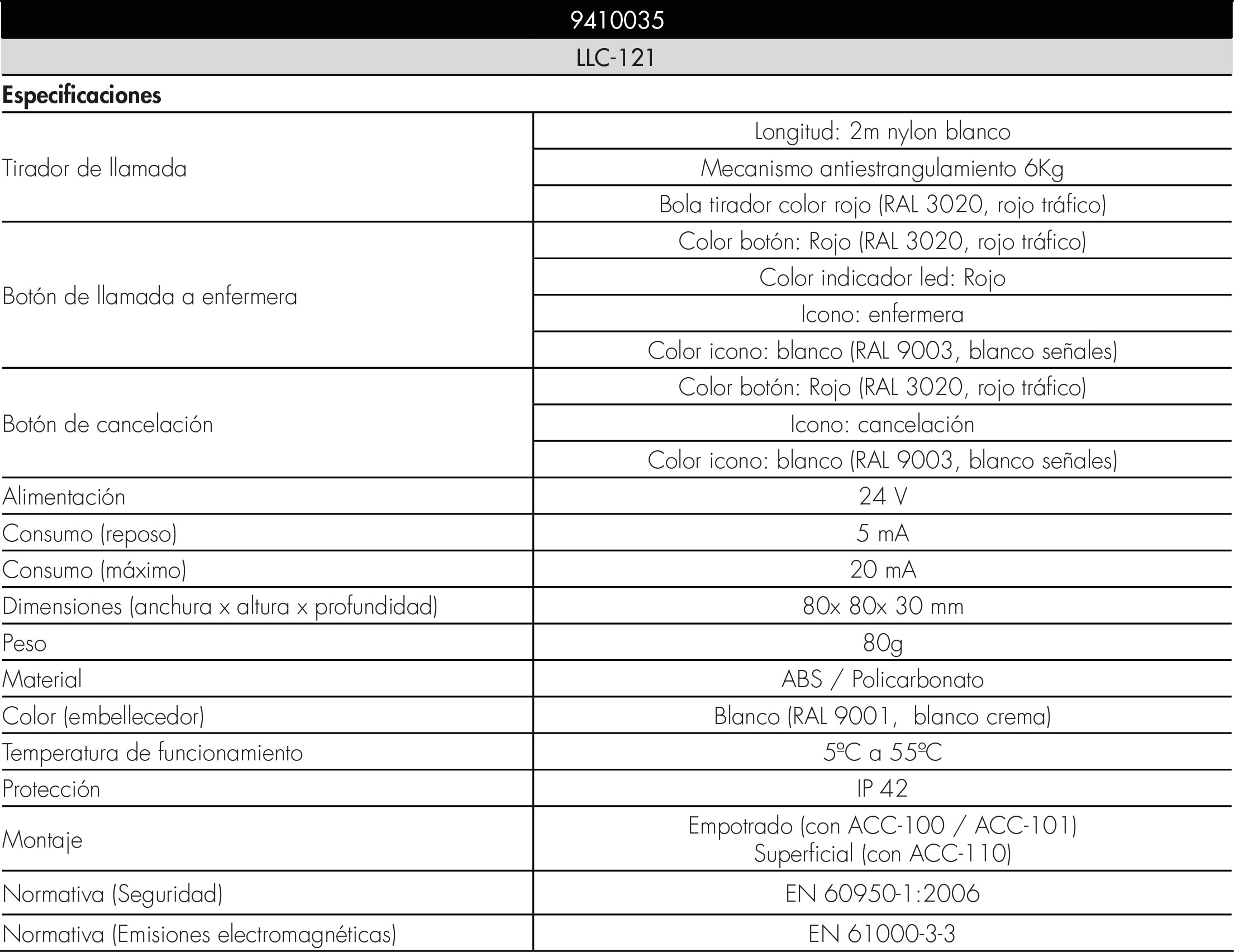 Periférico de baño con tirador de llamada de 2m, pulsador de llamada con indicador LED rojo y pulsador de cancelación. Permite al paciente lanzar una llamada tirando del tirador o desde el pulsador de llamada rojo. Una vez iniciada la llamada paciente, el indicador LED rojo permite una fácil identificación del estado de la llamada. Dispone de un mecanismo antiestrangulamiento que permite dividir la cuerda del tirador en 2 partes evitando accidentes. Dispone de una bola de color rojo en el extremo inferior que permite al paciente una fácil localización del tirador. Montaje empotrado o superfical.