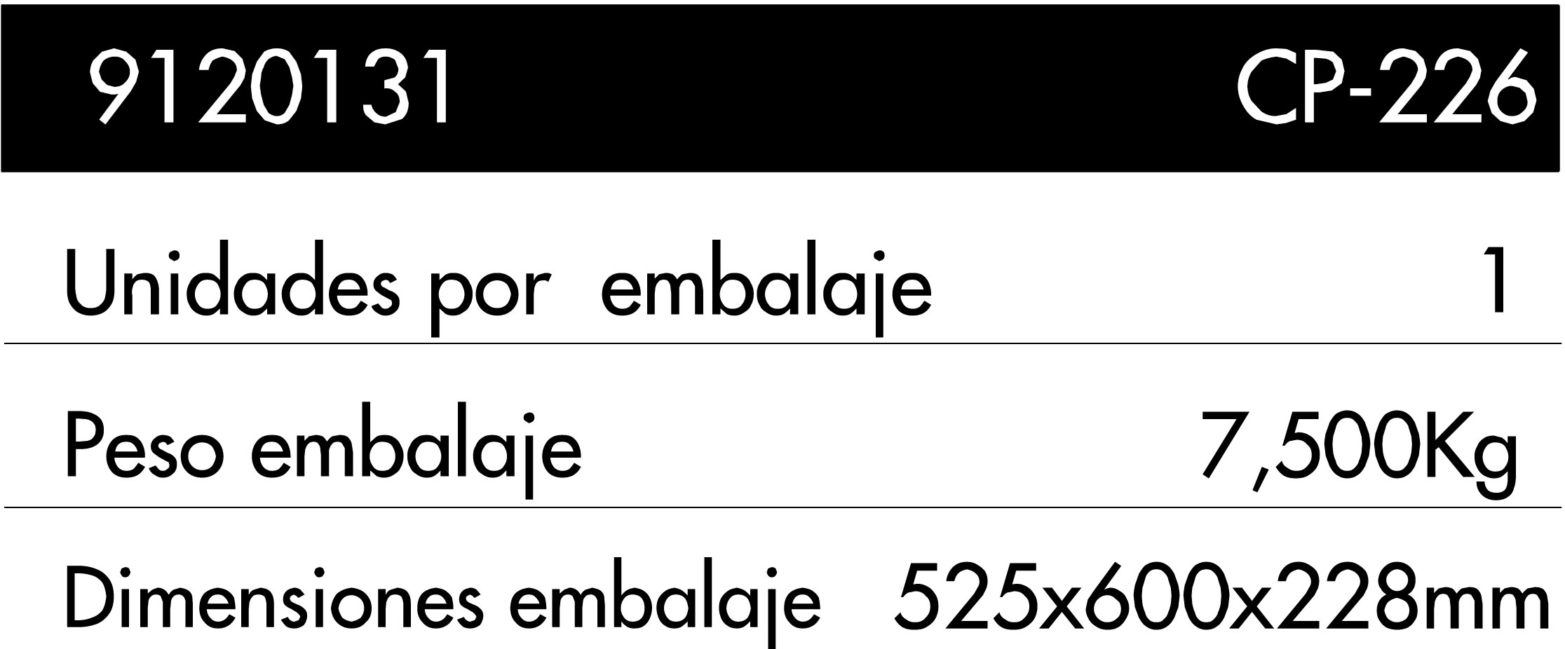 Cofre metálico sin fondo y tapa con llave. Permite instalar un equipo con alimentador, amplificador y 10 módulos o alimentador y 11 módulos. También se pueden montar un equipo con dos alimentadores, un amplificador y 8 módulos, o dos alimentadores y 9 módulos. No incluye el marco soporte SP-226. Disponible como opción el ventilador VE-500.