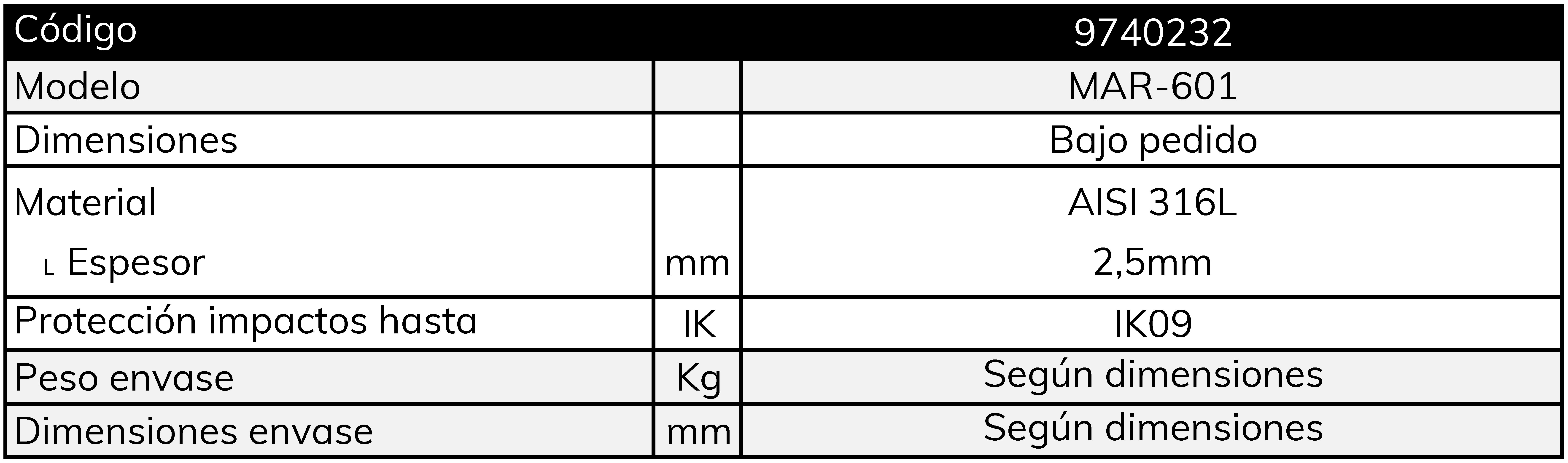 De utilidad en reposiciones, cuando la placa de calle a sustituir es de dimensiones superiores a la placa de calle a colocar o en instalaciones donde la pared presente irregularidades. Construcción en acero inoxidable AISI 316L con espesor 2,5 mm. Protección contra golpes e impactos hasta el grado IK09.