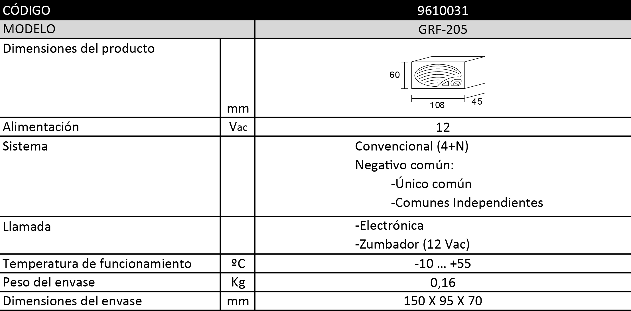 Módulo grupo fónico para incorporar a placa L201 de pulsadores. Conexiones mediante bornas con tornillo y pulsador para encendido de luces de los tarjeteros de pulsadores. Altavoz y micrófono integrados. Sistema convencional con llamada electrónica y zumbador, compatible con la mayoría de teléfonos convencionales de otros fabricantes.