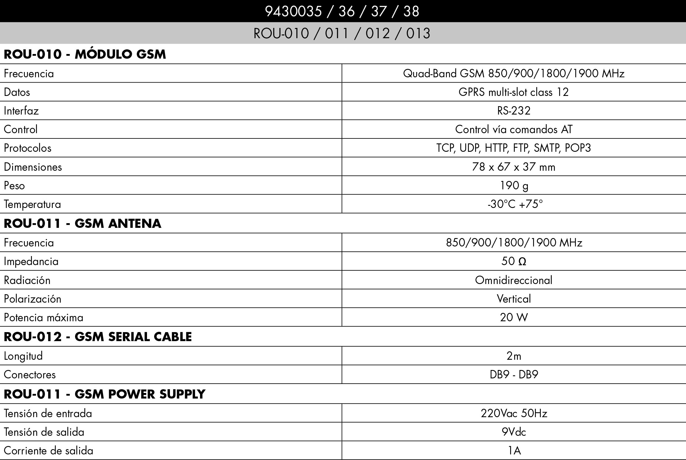 Los modelos ROU-010/011/012/013 conforman un módem GSM que se integra, vía conexión serie, a la unidad central de control (SRG-120) del sistema ALCAD NURSE CALL, para el envío de mensajes SMS para avisos técnicos. Permite enviar mensajes de alarma SMS a los teléfonos móviles del servicio de mantenimiento de la instalación, en el caso de que se averíen o se desconecten, de forma no autorizada, las centrales de habitación o concentradores multihabitación.