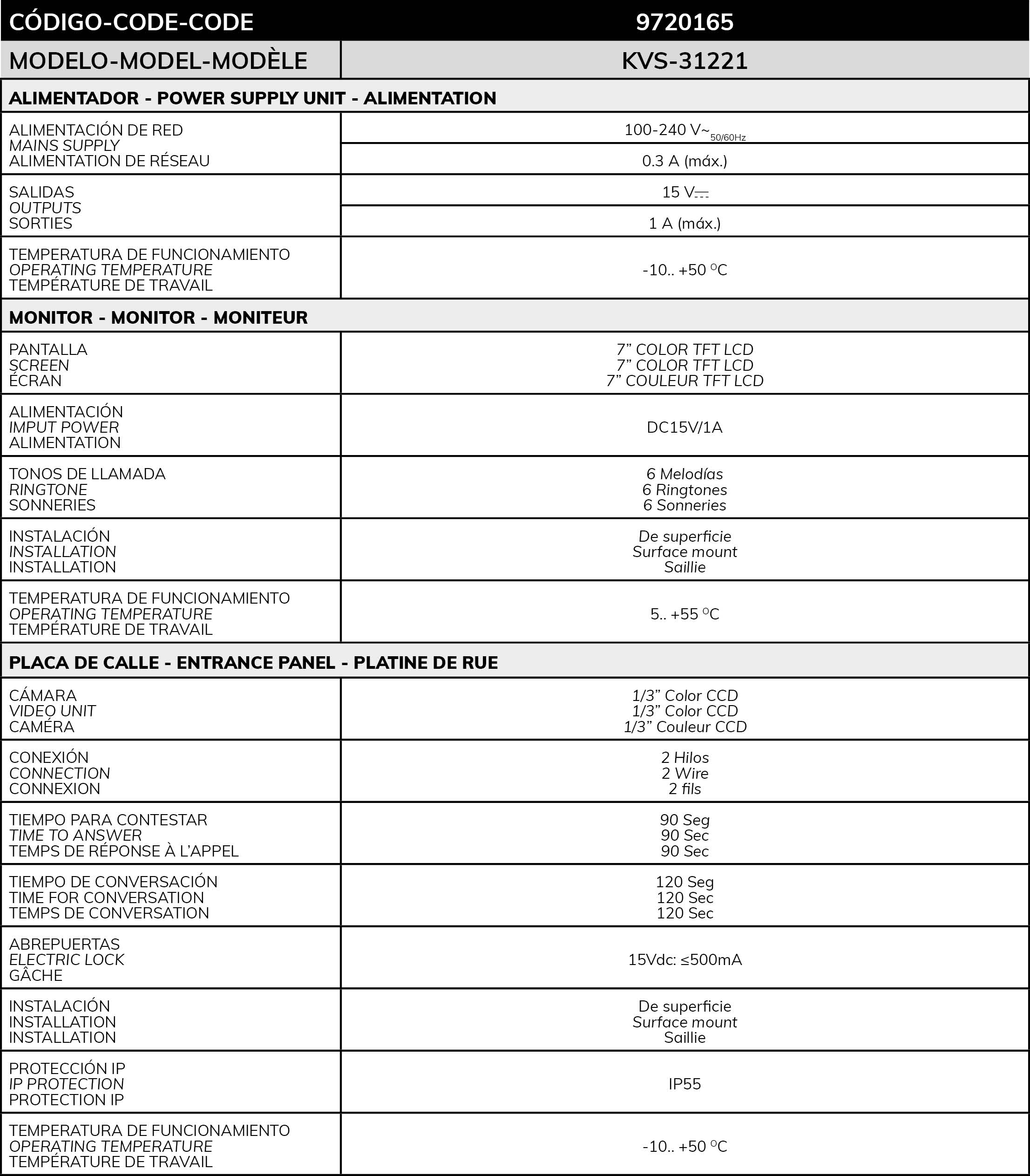 Kit de video portero de 2 hilos para instalaciones de video portero en vivienda unifamiliar. Placa de calle con un pulsador táctil, visera, cámara de 120º de visión y lector de llaves de proximidad. Este sistema de video portero le va a permitir controlar el acceso de personas externas a su propiedad, permitiéndole además identificar a la persona que realiza la llamada. El sistema de autoencendido le permite visualizar la imagen captada por la tele cámara de la placa de calle sin necesidad de recibir llamada. Este sistema de autoencendido resulta de utilidad en situaciones de vigilancia o cuando, por cualquier razón, se desee establecer comunicación con la placa de calle. Como función adicional, el monitor incorpora un registro de captura automática de imágenes de llamadas no atendidas. Cuando una llamada no ha sido atendida, el monitor almacena automáticamente la imagen de la persona que ha realizado dicha llamada. El Kit incluye alimentador en carril DIN.