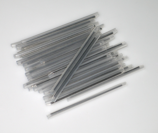 Manguito protector termorretráctil con empalme por fusión de fibra óptica, 50 x 3 mm.