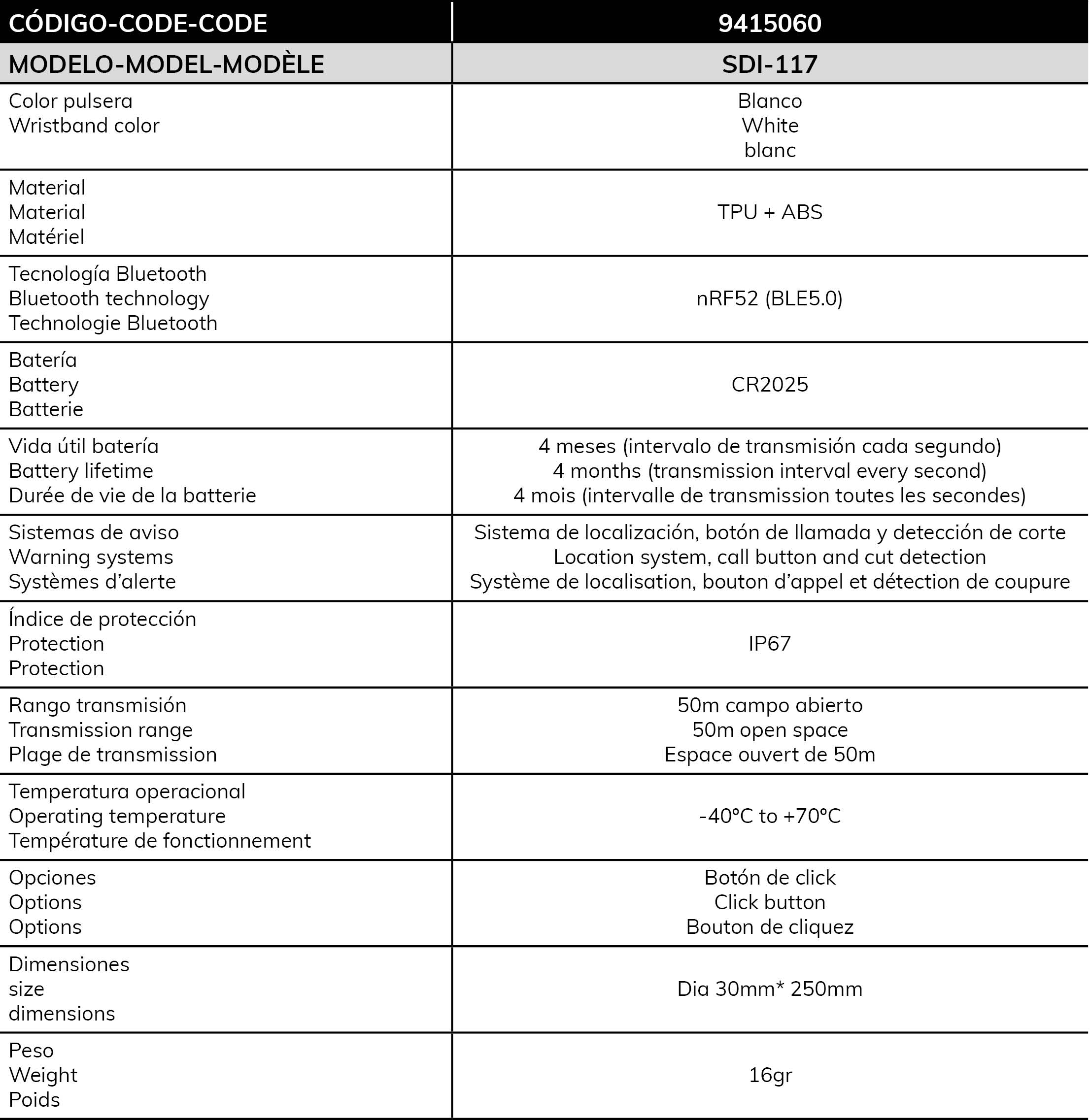 Esta pulsera dispone de múltiples sensores que permiten disponer en tiempo real de la localización de los neonatos gracias a su sistema bluetooth, llamada de emergencia mediante un botón touch en su superficie y un sistema de detección de corte de dispositivo para evitar el hurto en las instalaciones.