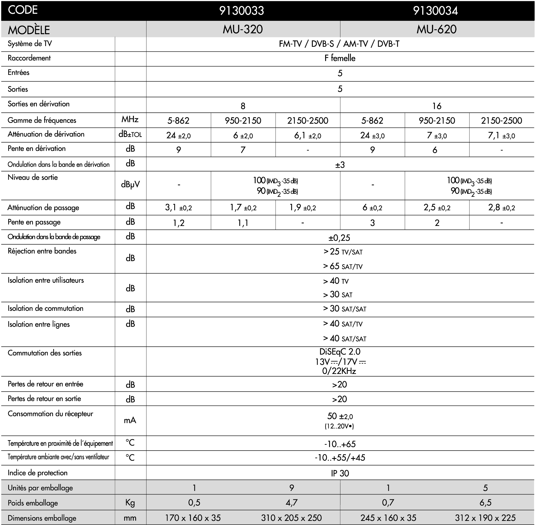 Multicommutateurs pour 4 polarités et TV terrestre avec 8 pour les installations en cascade.Les sorties de dérivation sont amplifiées dans la bande IF satellite il doit être alimenté à partir de chaque récepteur individuel pour alimenter la commutation et l'amplification de chaque sortie de prise