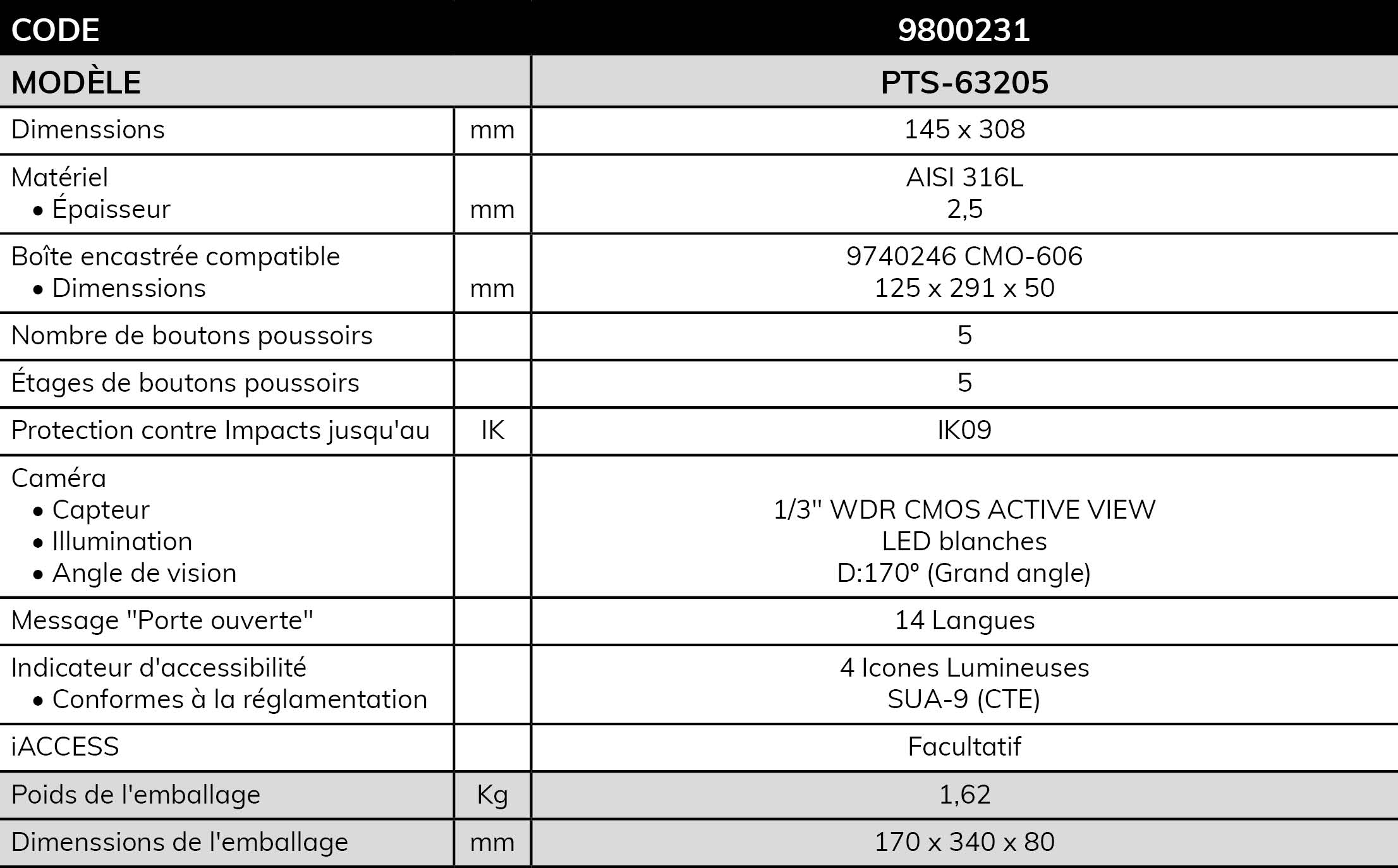 - Module d'accessibilité avec synthétiseur vocal avec 14 langues sélectionnables pour le message ''porte ouverte''. Cela inclut la possibilité de le faire taire.
