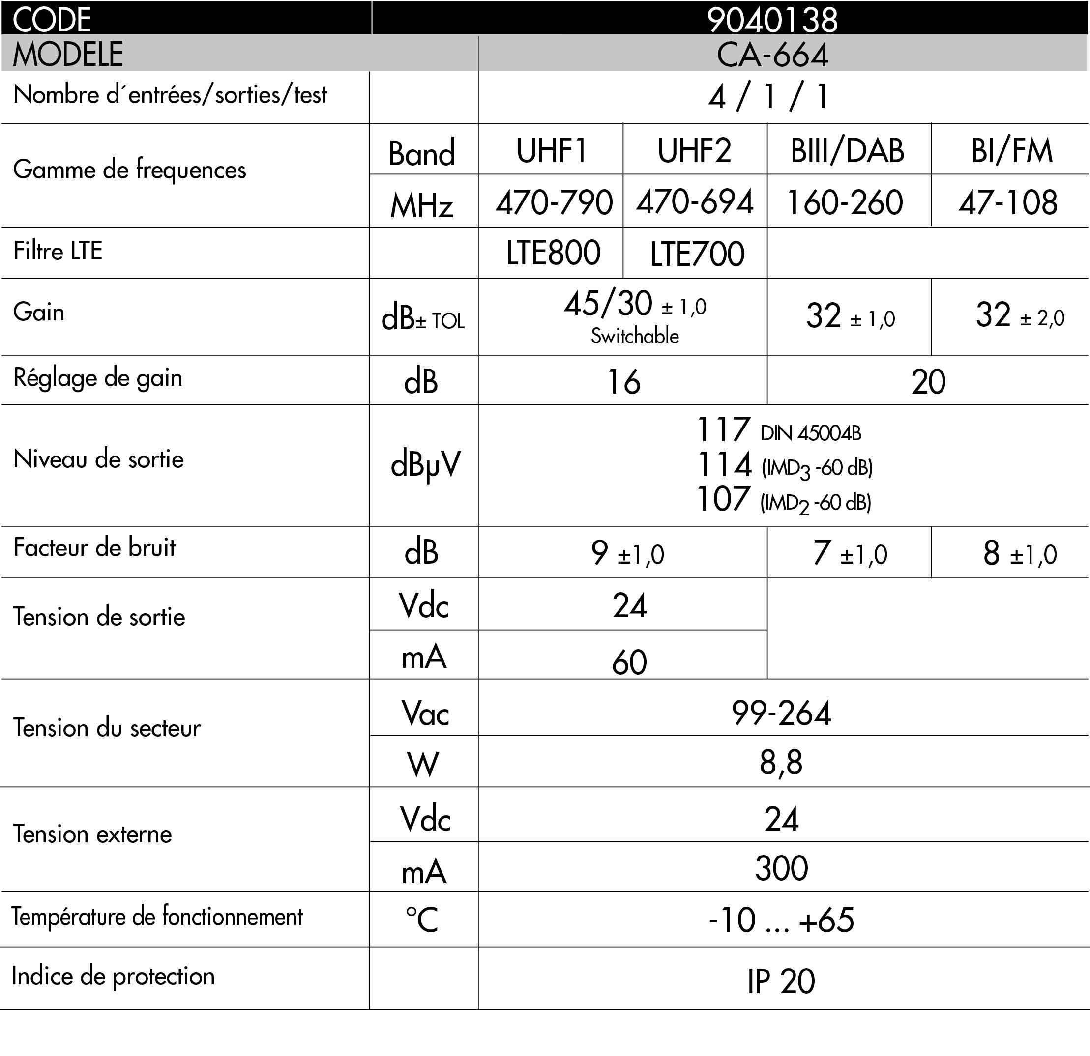 Installations collectives numériques et analogiques à grande échelle affectées par la transmission de signaux de téléphonie mobile LTE700 et LTE800. Convient aux installations où les canaux de chaque bande sont reçus à des niveaux similaires. Réglage au moyen de commutateurs et de régulateurs qui contrôlent le gain à chaque entrée.