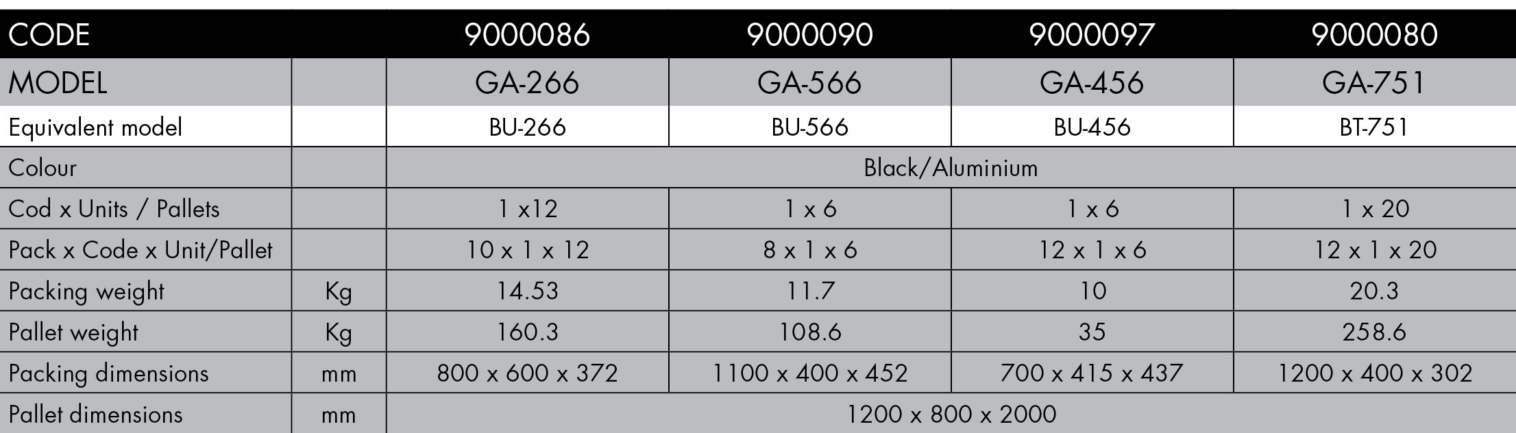 Les caractéristiques électriques des antennes dans un pack multiple prémonté ou démonté sont identiques à celles des modèles équivalents.