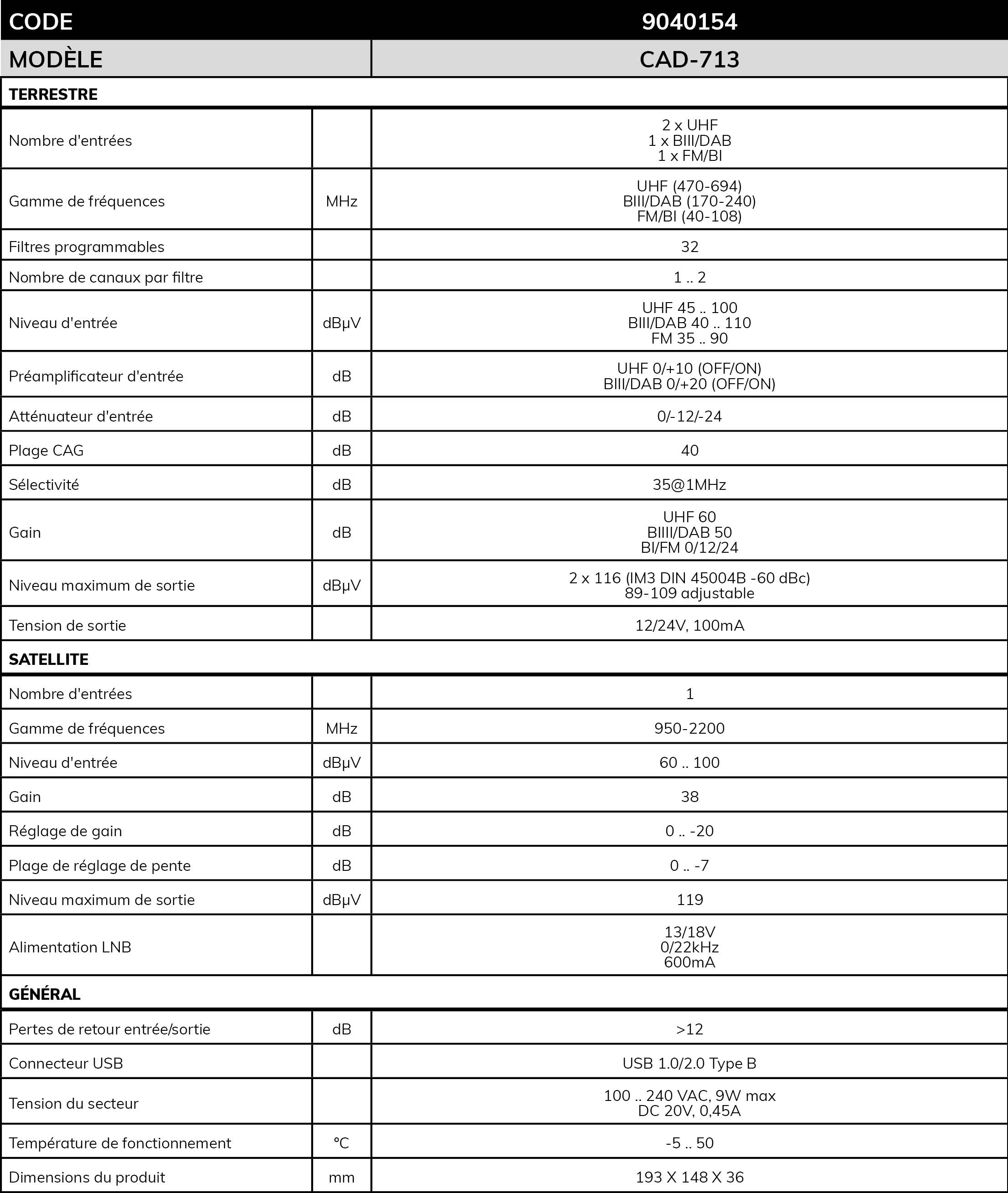 CENTRALE AMPLIFICATION NUMERIQUE TV-SAT