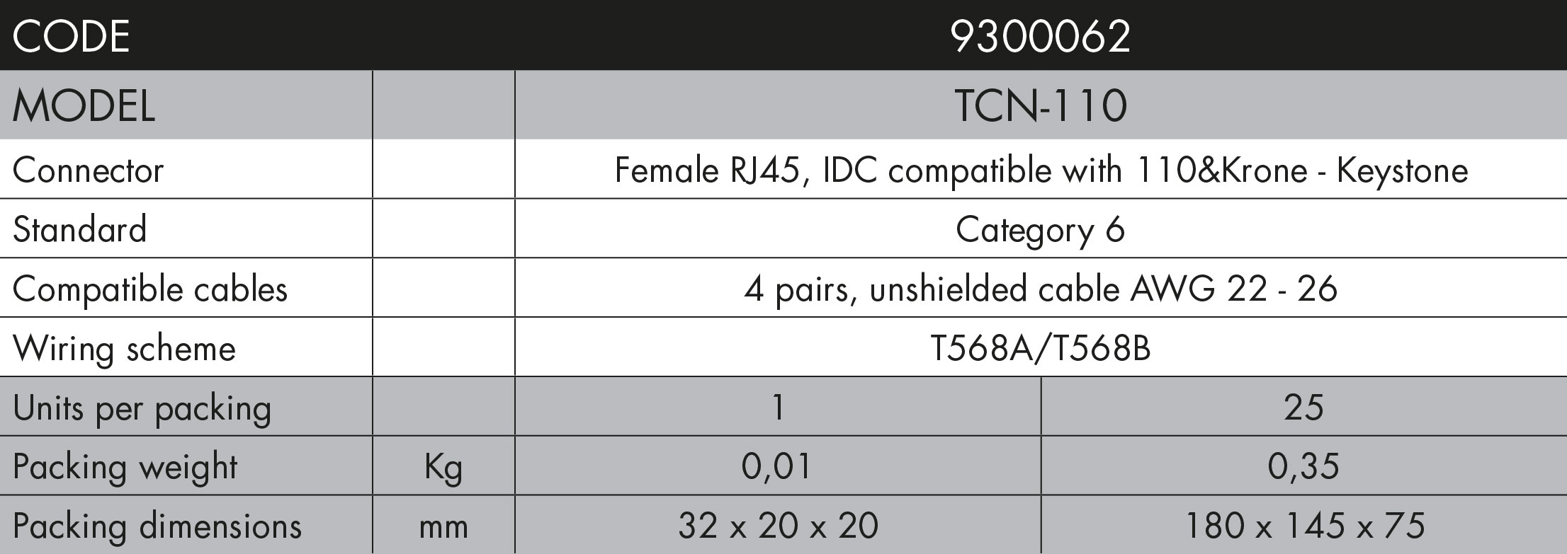 Connecteur mâle RJ45 pour câble UTP de catégorie 6. Chacun des connecteurs est monté à l'aide de l'outil de sertissage HT-100.