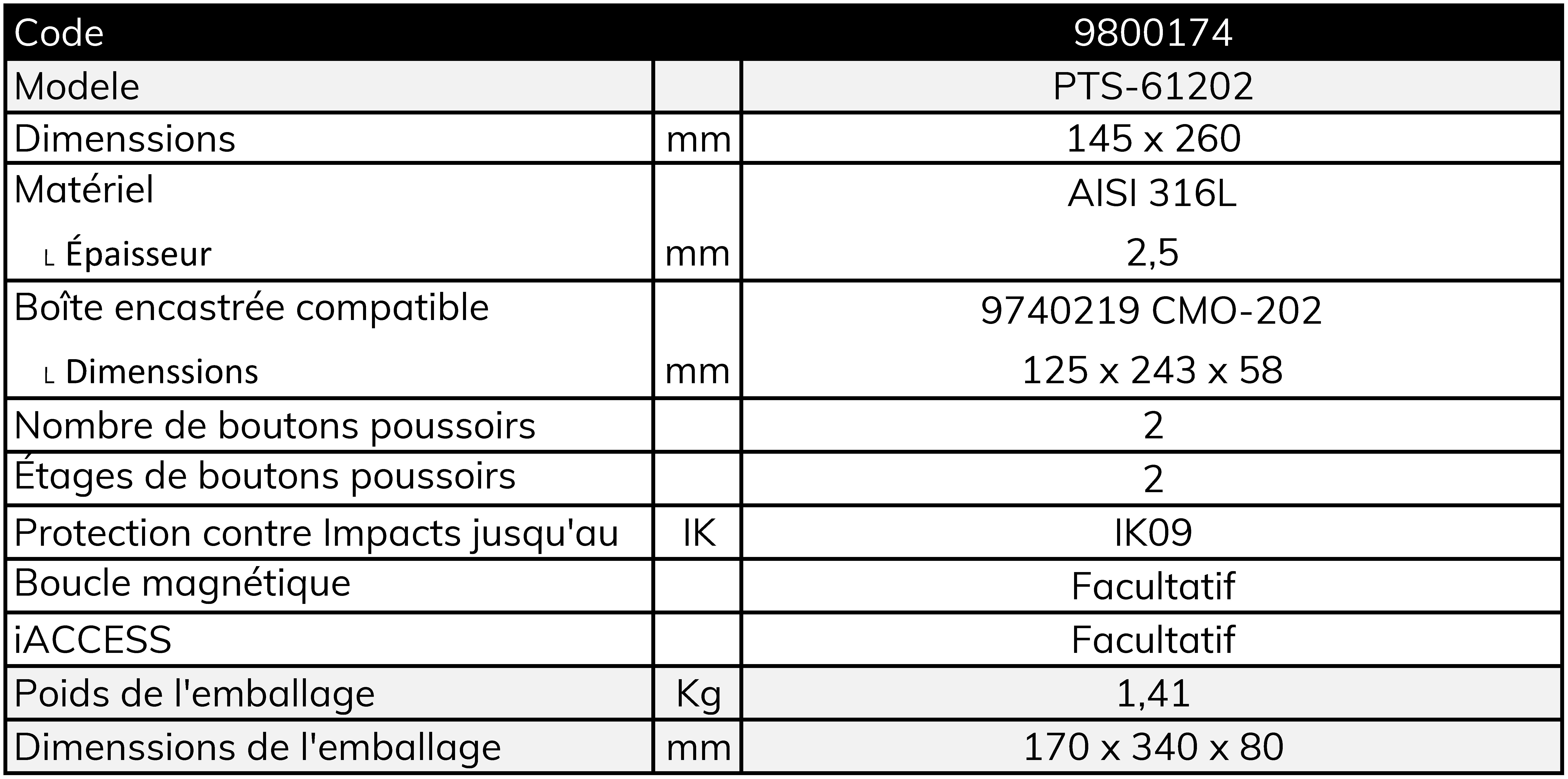 - Construction en acier inoxydable AISI 316L avec une épaisseur de 2,5 mm, avec des vis spéciales anti-vandalisme.