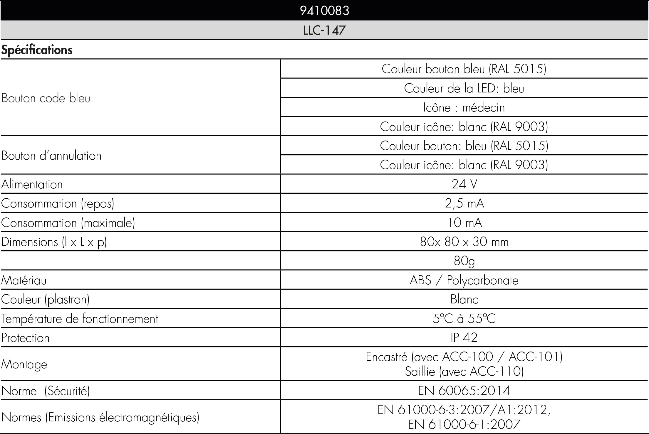 Périphérique de chambre avec bouton dappel de docteur, led bleue et le bouton Annuler. Il permet de lancer un appel code bleu par la touche dappel bleu. Une fois lappel lancé, le voyant bleu permet didentifier facilement lendroit doù lappel a été lancé. Lannulation de lappel seffectue par le bouton Annuler. En saillie ou encastré.