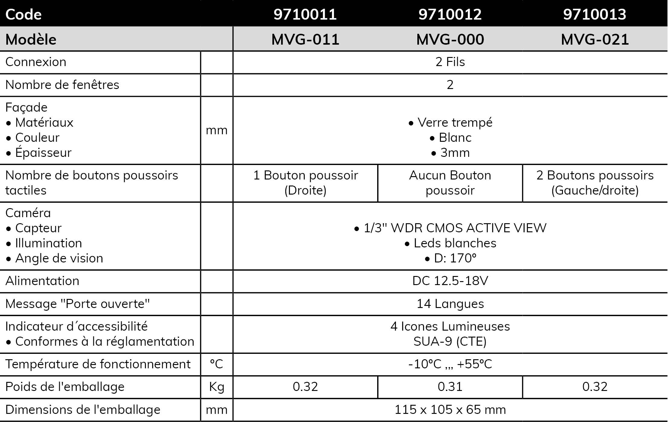 Il intègre un groupe phonique, un synthèse vocale (14 langues), une caméra Active View grand angle , indicateur handicap. Ce module intègre 1 bouton d'appel tactile disposé en colonne (à droite).