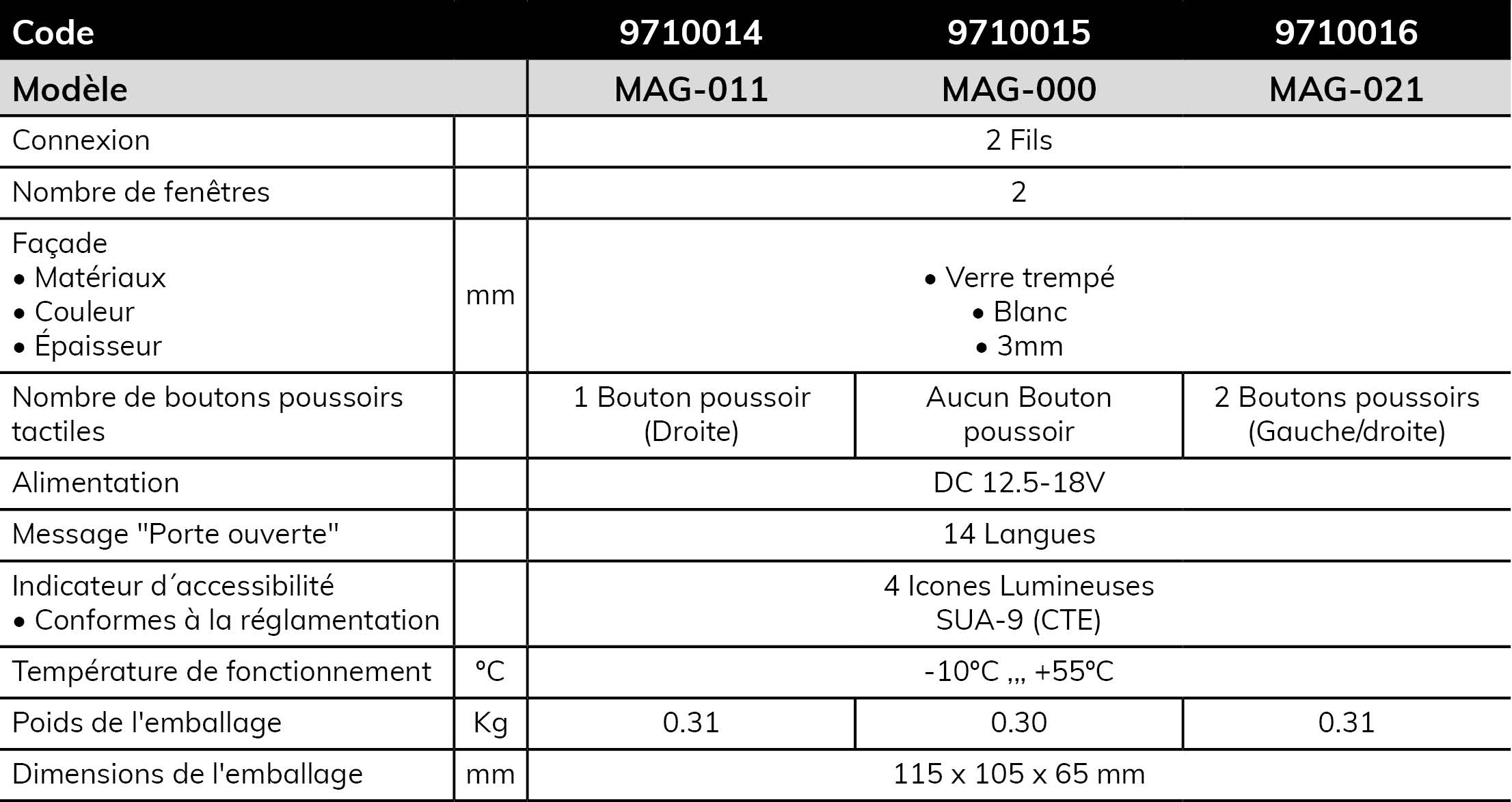 Les icônes d'accessibilité lumineuses offrent une information visuelle de chacun des états de fonctionnement (appel, conversation, porte ouverte et système occupé), conformes à la réglementation d'accessibilité SUA-9 du Code Technique du Bâtiment et suivant les recommandations de la fondation ONCE (Organisation Nationale de les aveugles espagnols).