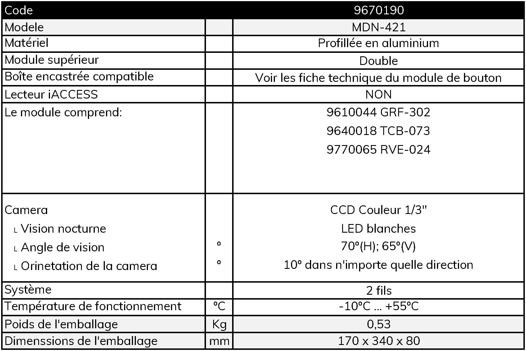 MODULE CAMERA COULEUR ET MAN-420
