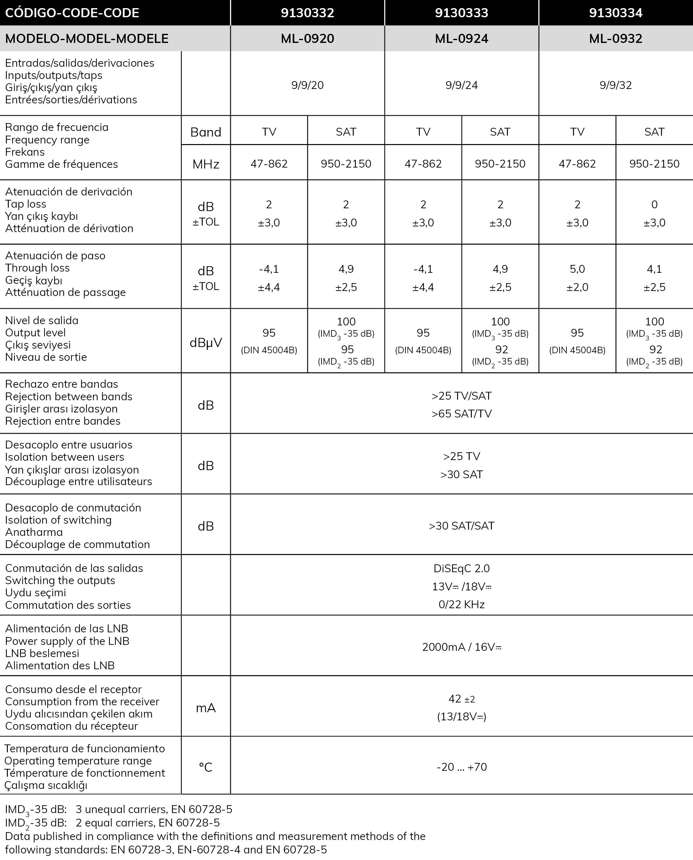 Installations collectives de télévision par satellite et terrestre de taille moyenne. Il est essentiel qu'ils soient montés avec des multocommutateurs d'extrémité, de manière à obtenir des distributions de jusqu'à 128 sorties sur une seule ligne si elles sont installées avec des amplificateurs intermédiaires.