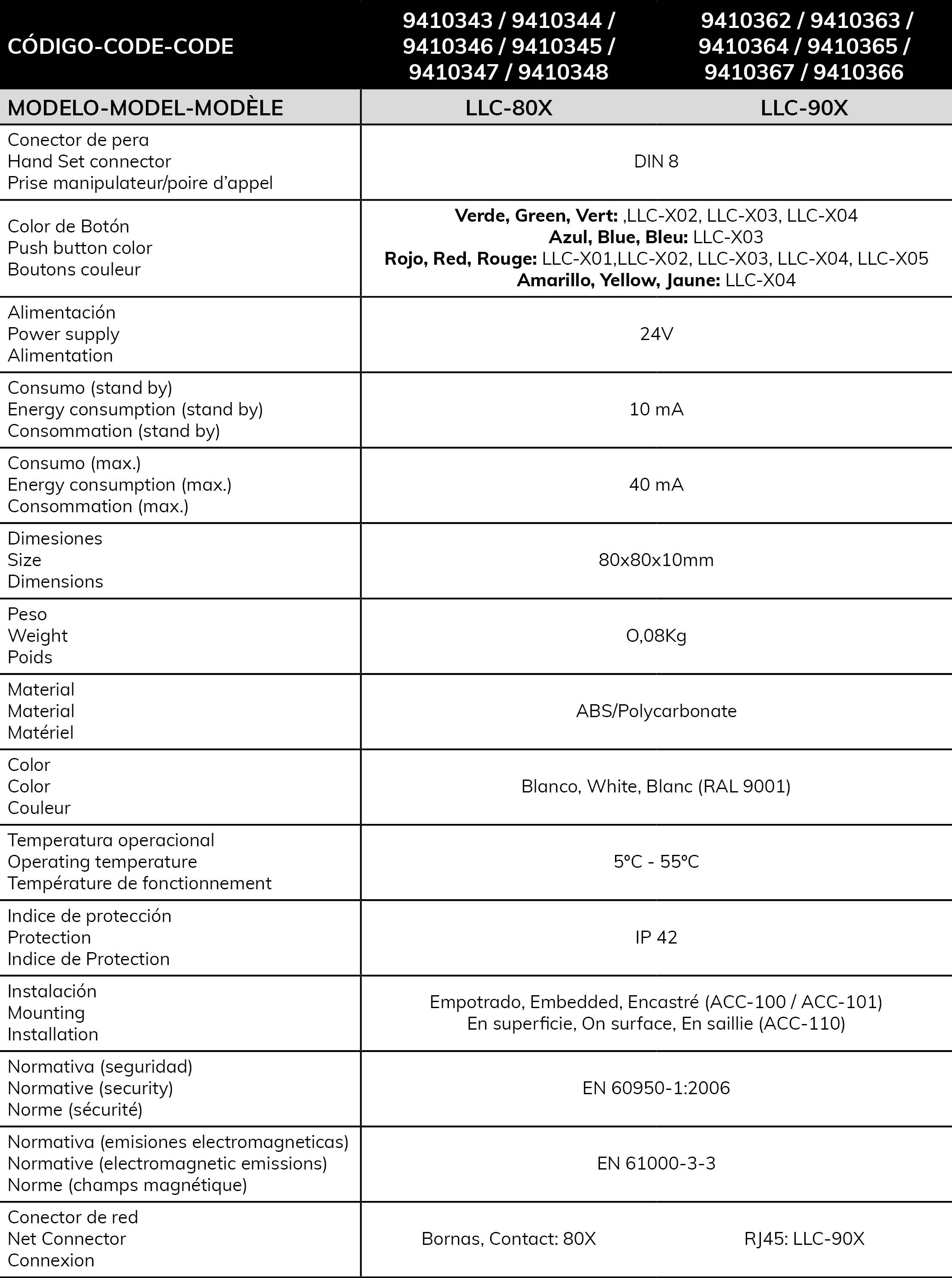 Bloc mural avec 2 boutons poussoir (appel et présence) et connecteur femelle pour poire d'appel (DIN8).