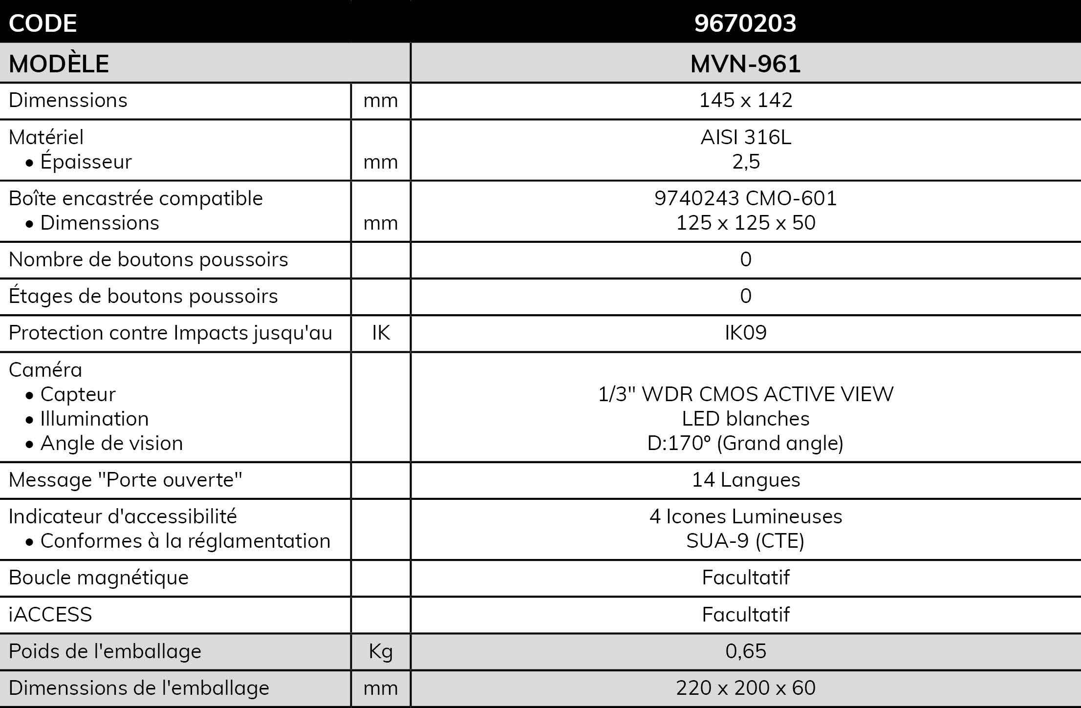 - Module d'accessibilité avec synthétiseur vocal avec 14 langues sélectionnables pour le message ''porte ouverte''. Cela inclut la possibilité de le faire taire.