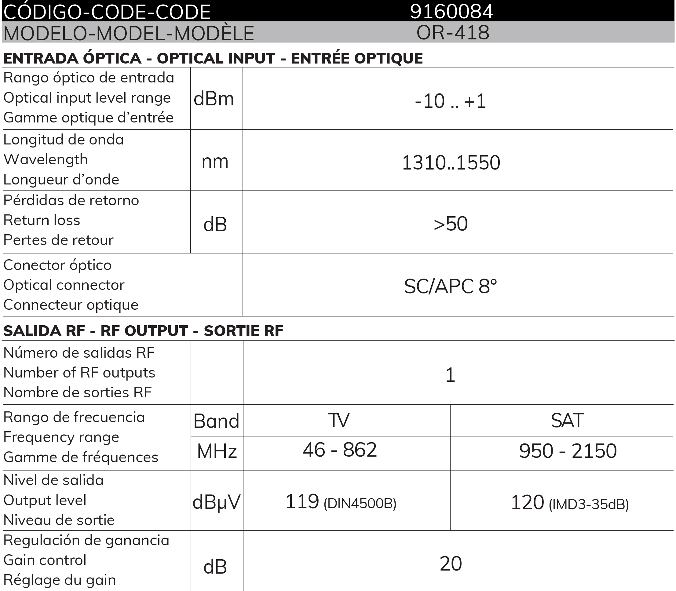 Récepteur optique pour signaux de TV terrestre et SAT avec alimentation intégrée.