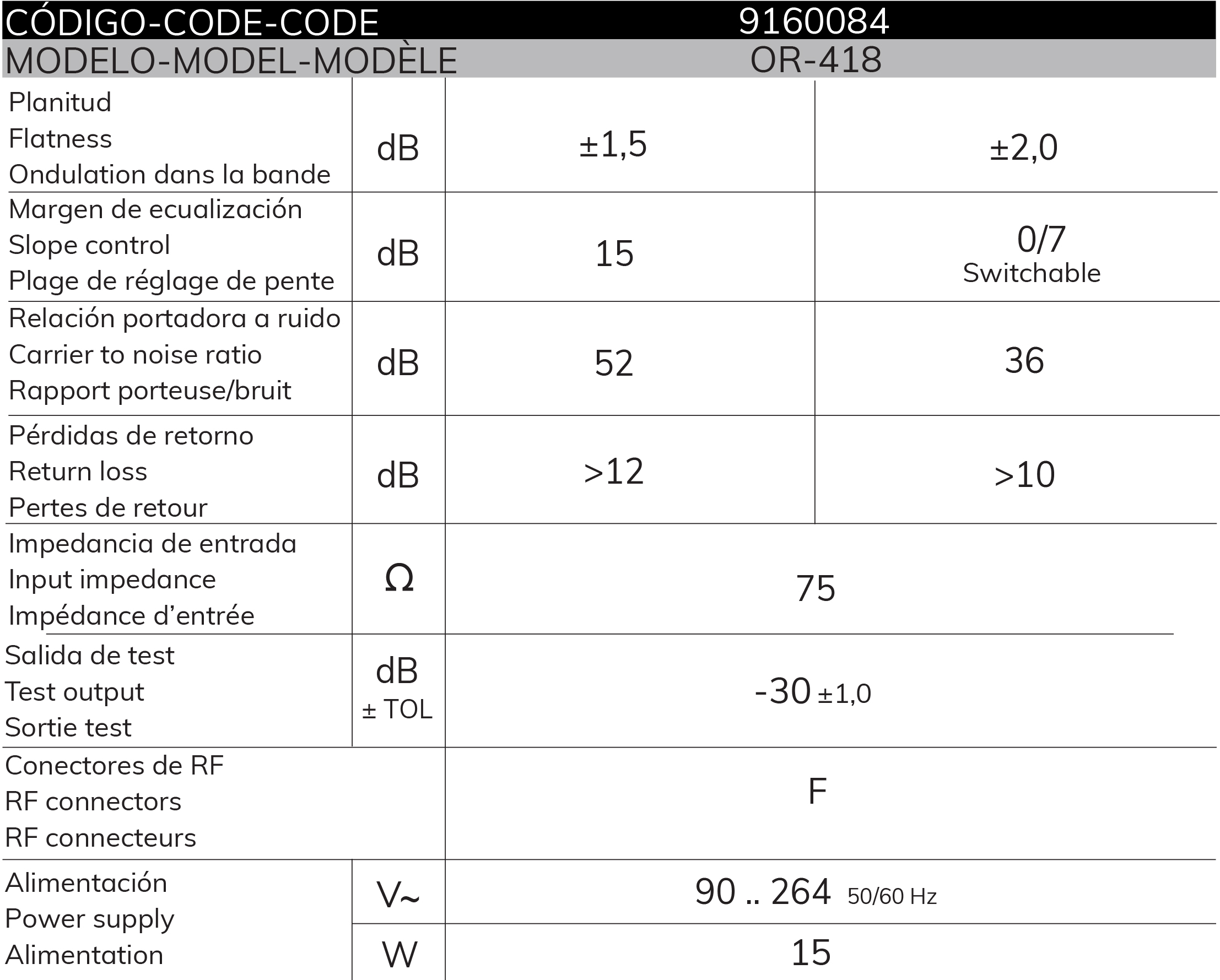 Il dispose d'un connecteur de sortie F pour câble coaxial. Chaque bande (terrestre et SAT) possède un régulateur de gain et un régulateur de pente pour faciliter le réglage du niveau.