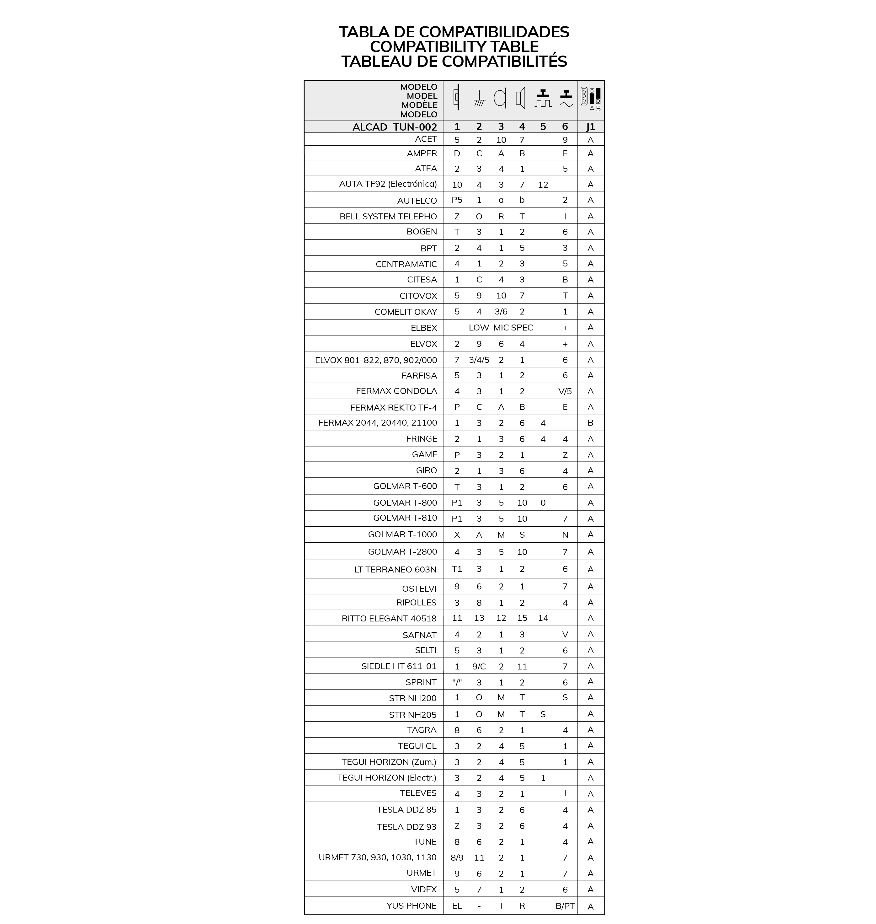Terminal avec boîtier en plastique ABS blanc, finition brillante. Le cordon téléphonique qui relie le casque à la base est amovible au moyen de connecteurs RJ15. Montage mural avec plusieurs points d'ancrage. Il possède de 2 boutons, un pour l'ouverture de la porte et un autre pour les fonctions auxiliaires. Système conventionnel 4 + N avec appel électronique et buzzer, pour le remplacement, compatible avec la plupart des téléphones 4 + N d'autres fabricants.