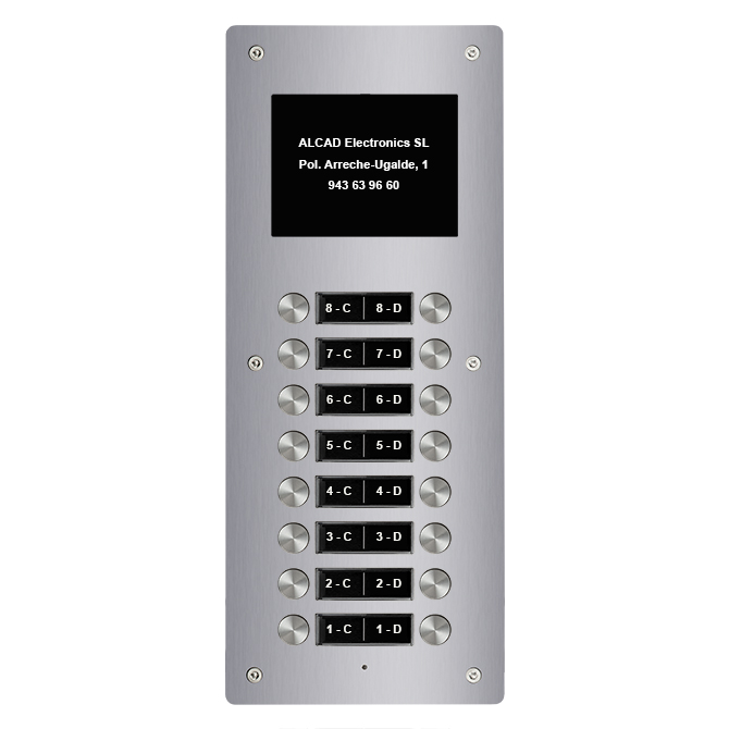 Vandal Resistant entrance panel for 2-wire video door entry system installations. Card holder / iACCESS illuminated module is included. This panel has 16 call push-buttons arranged in 2 columns.