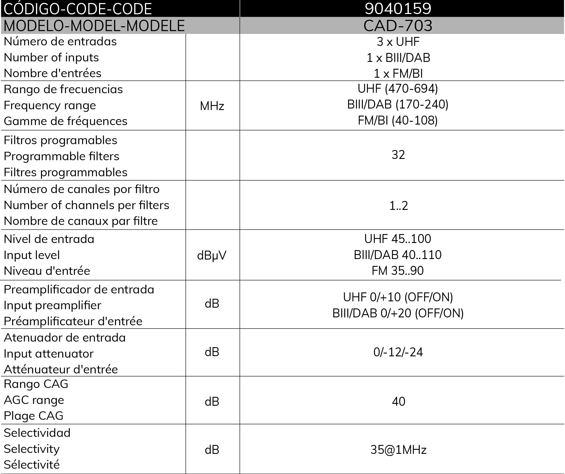 High selectivity programmable compact headend to digitally filter, convert and equalize DVB-T/T2 channels. The built-in high output amplifier allows the use in small or medium buildings installation.