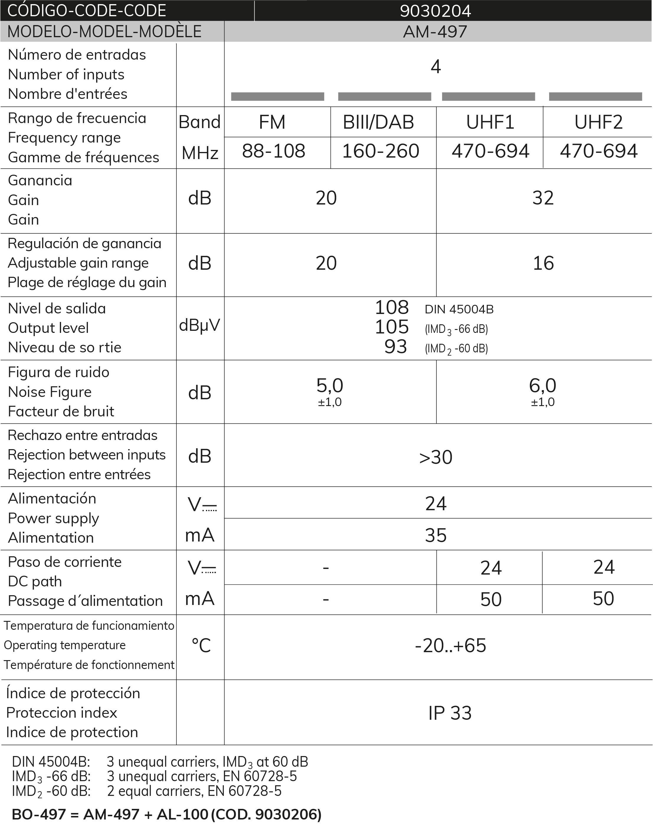 AMP UHF-UHF-BIII/DAB-FM 32 dB LTE700 24V