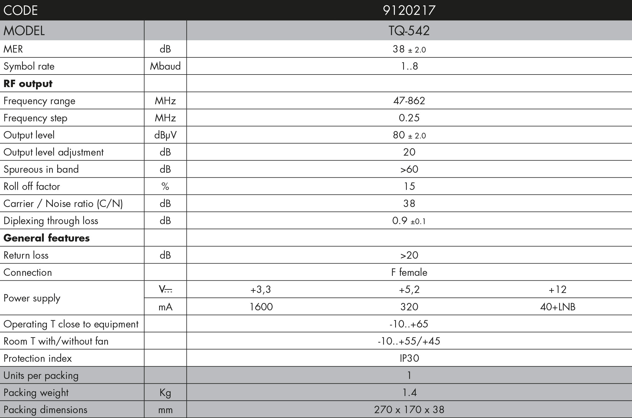 Two independents tuners. Automatic error-detection system hich greatly reduces maintenance work on the installation. Generated output channel of outstanding quality. Zamak chassis with metal side panels. F-type connectors. The equipment can be ssembled quickly and easily.