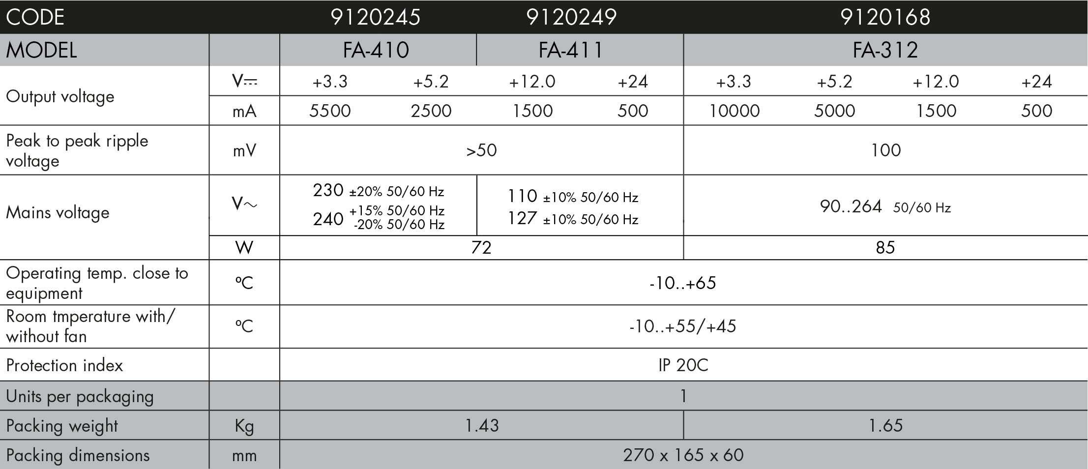 Protected against power surges, overloads and short-circuits. Zamak chassis with side gills to facilitate proper ventilation. Supplied with power cable.